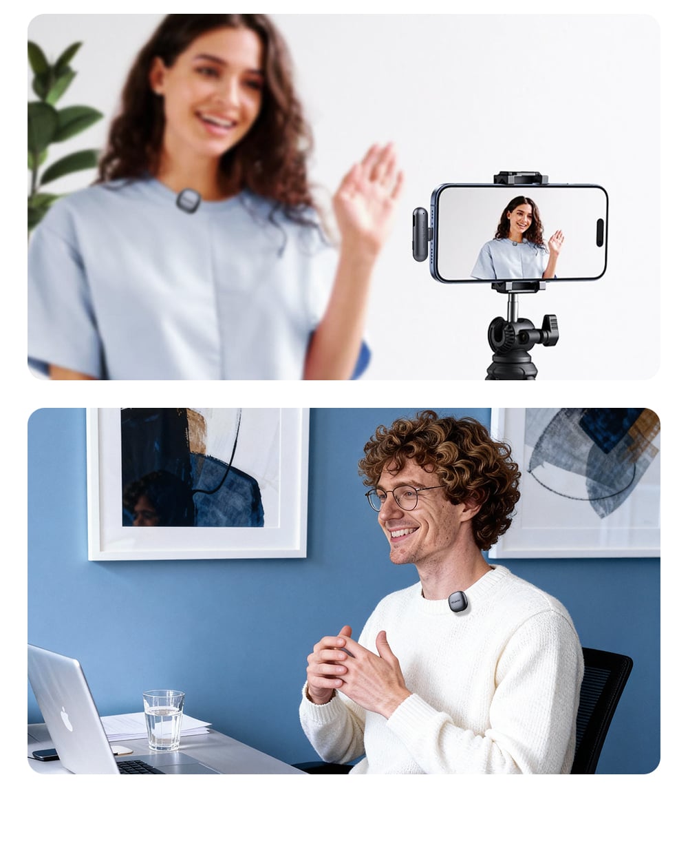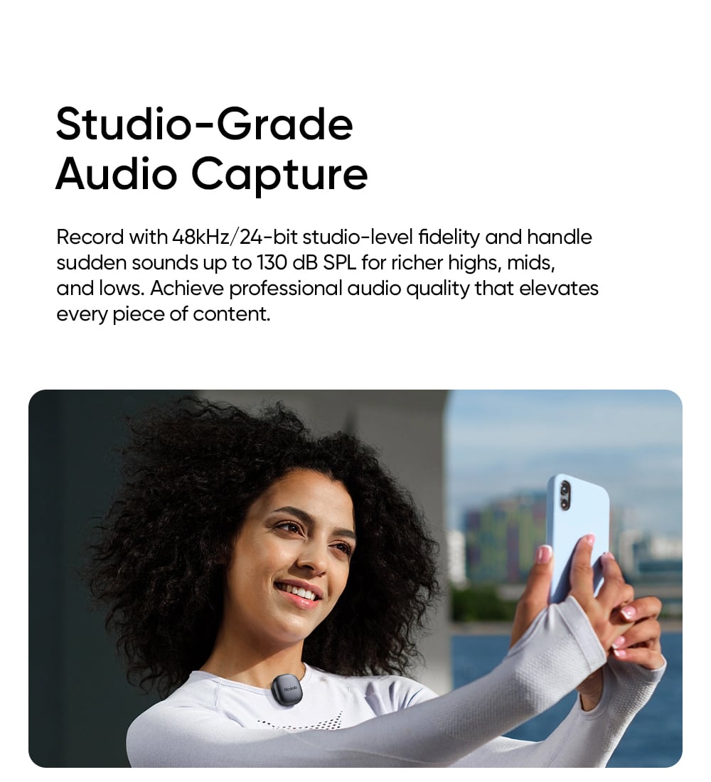 - Kẹp áo linh hoạt: Micro (Transmitter) có trọng lượng siêu nhẹ chỉ 10.7g, dễ dàng kẹp vào cổ áo mà không gây vướng víu hay làm mất thẩm mỹ trang phục.