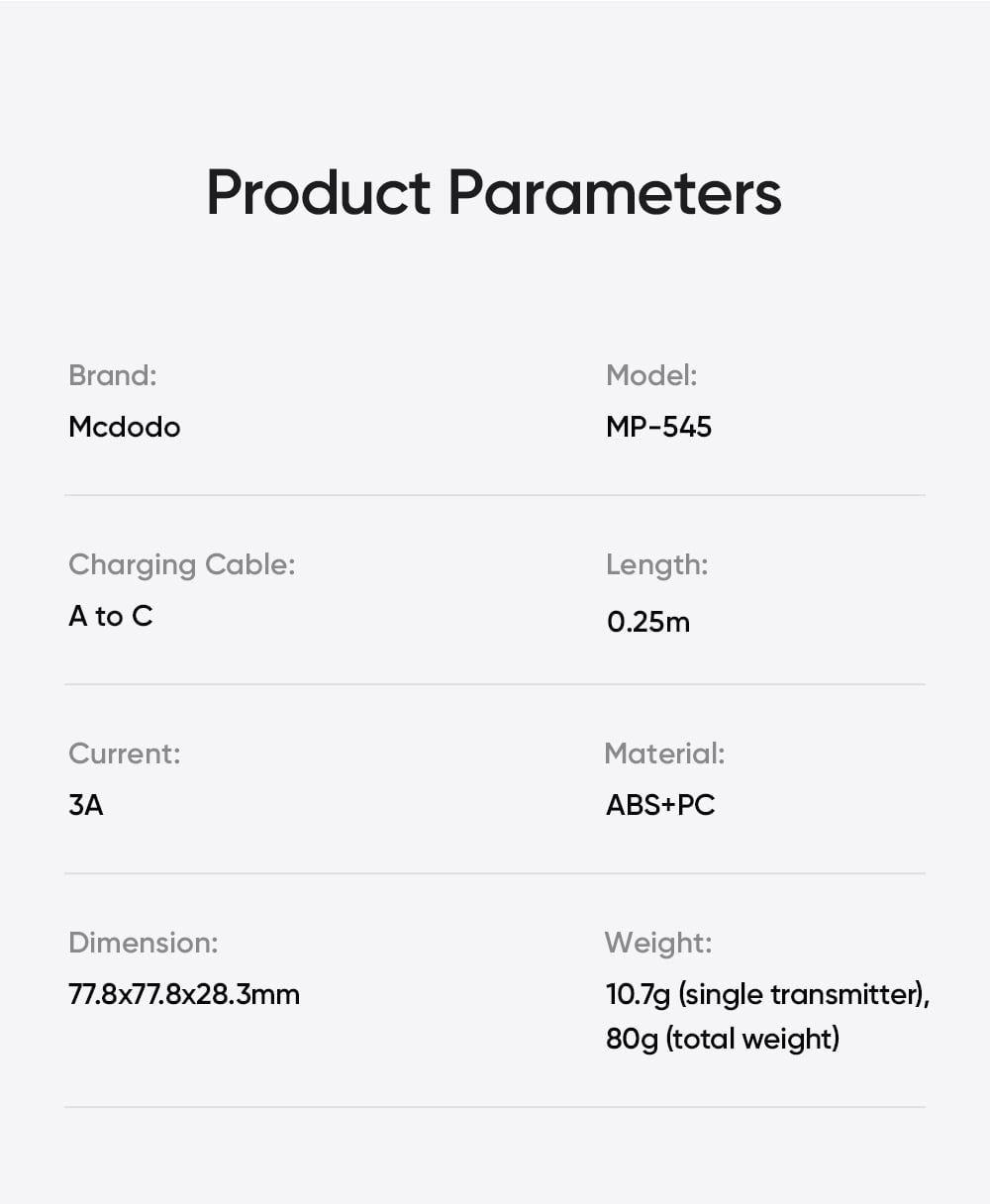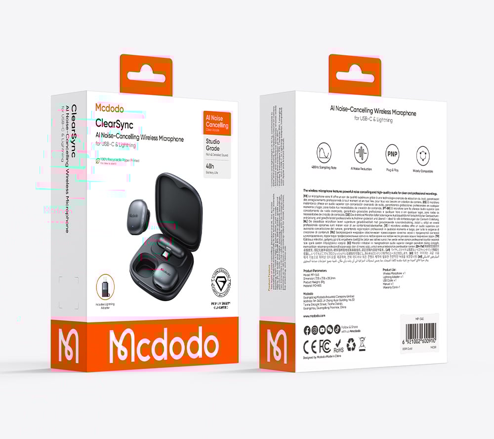 Giới thiệu Micro Không Dây MCDODO ClearSync series MP-545 (AI Noise-Cancelling, for USB-C&Lightning)