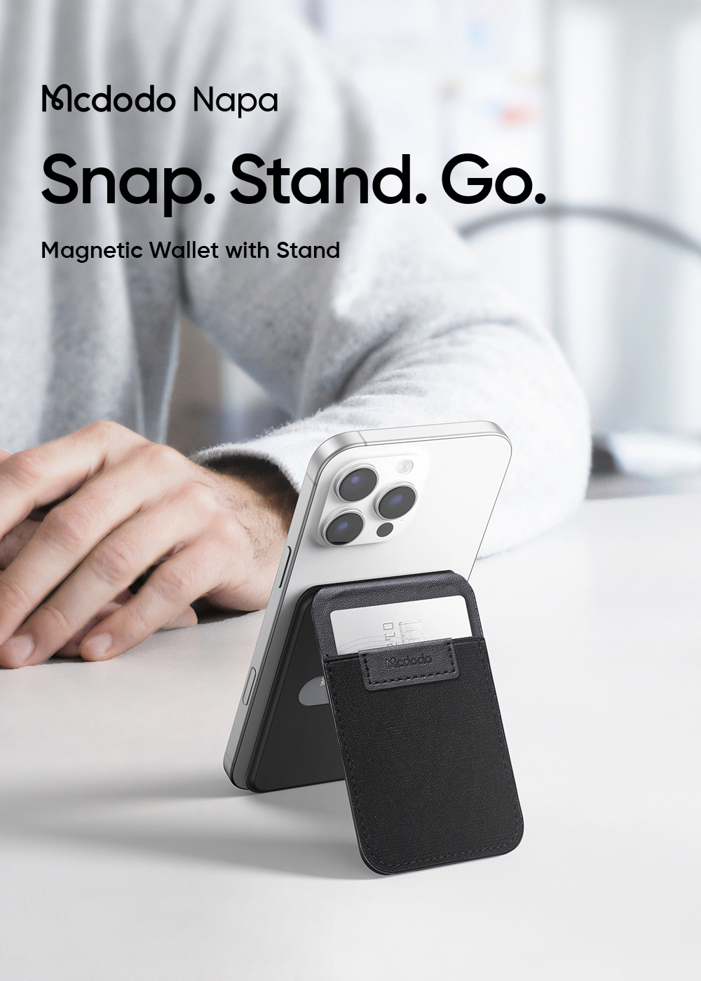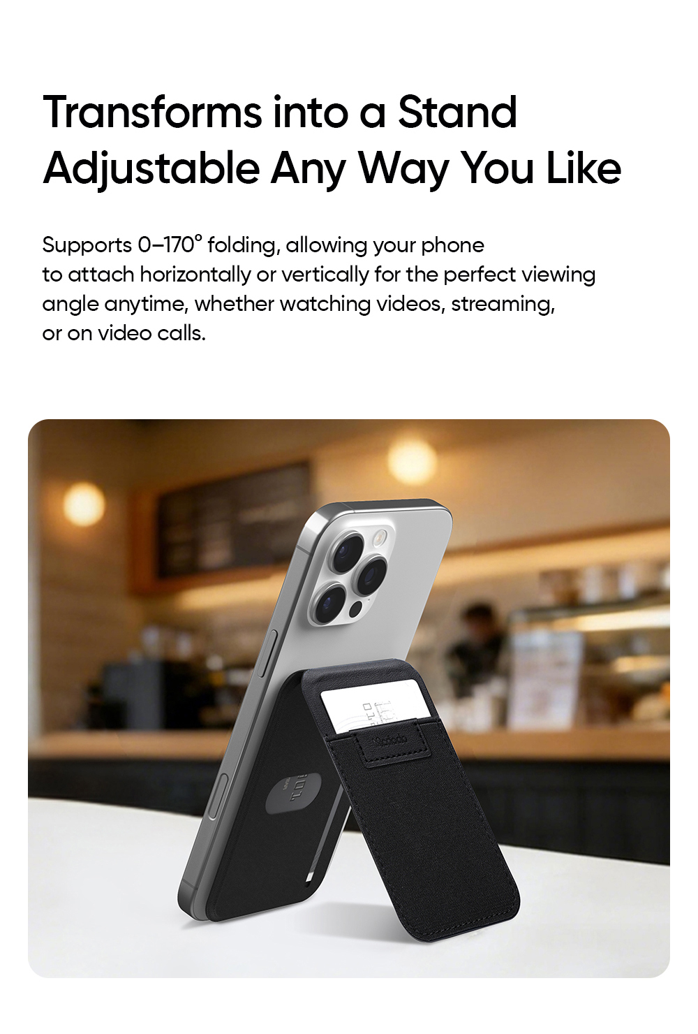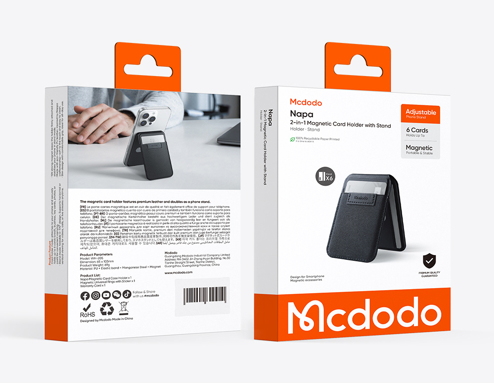 • Tên tiếng Việt: Ví Thẻ Tích Hợp Đế Giữ Điện Thoại Magsafe 2-in-1 MCDODO Napa series WH-205 (0-170° Adjustable Stand)