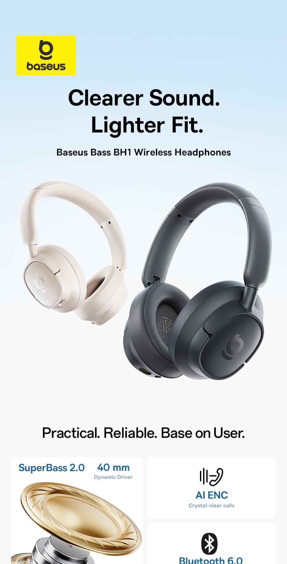 Giới thiệu Tai Nghe Chụp Tai Không Dây Baseus Bass BH1 (Bluetooth v6.0, 80H, 600mAh, SuperBass 2.0, AI ENC, Ultra-Low Latency, Smart App Control)