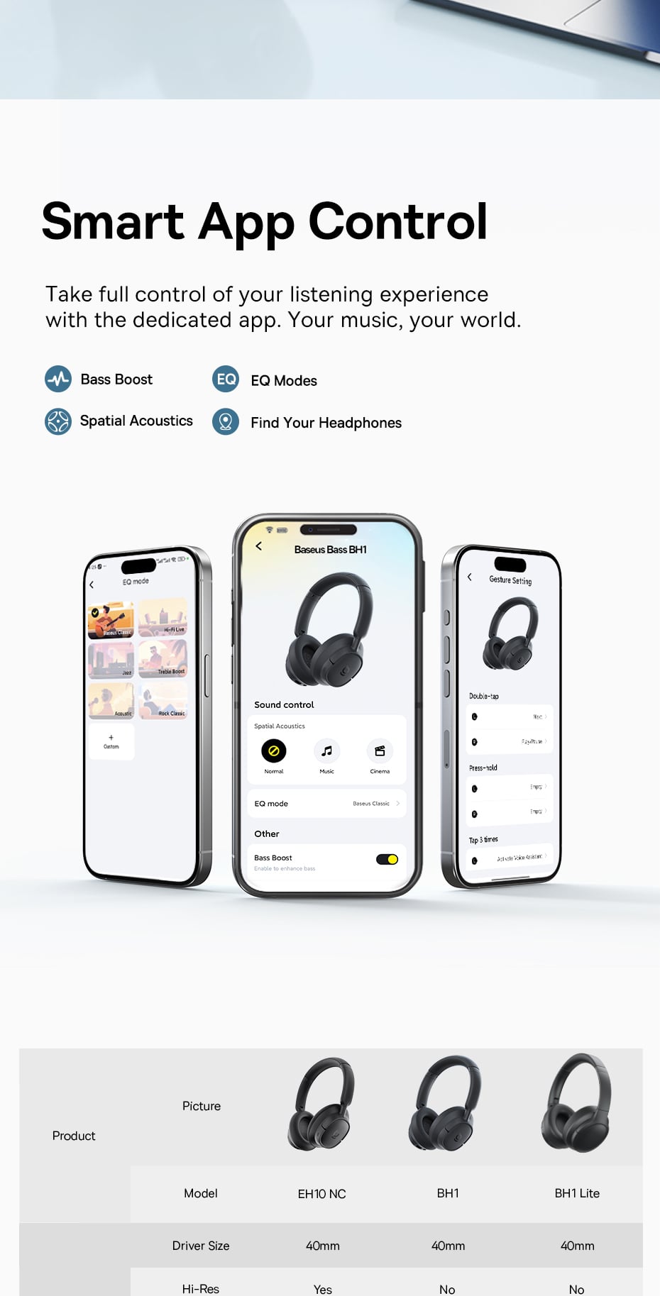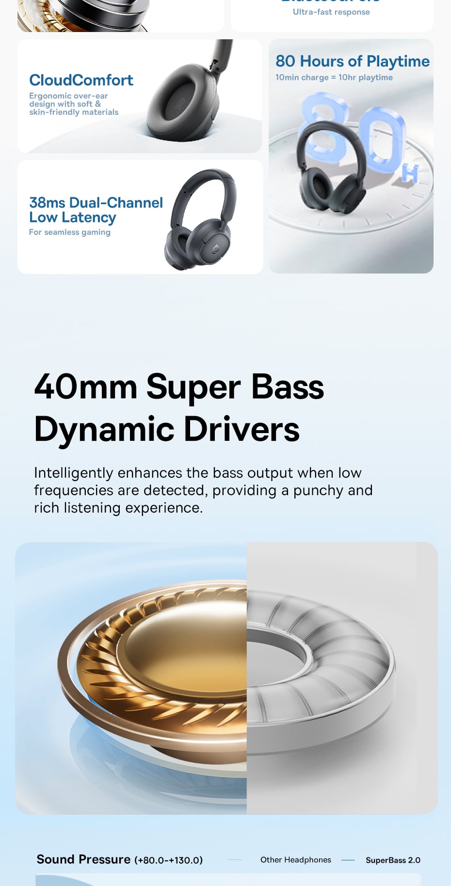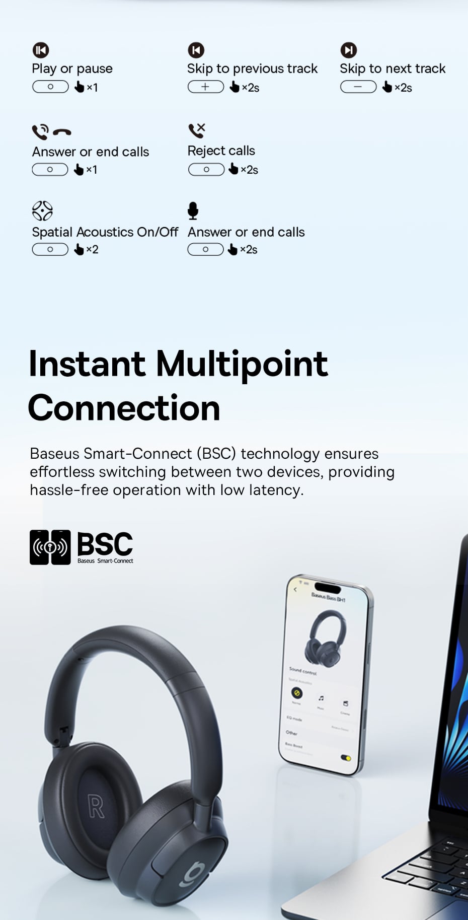 Tính năng Tai Nghe Chụp Tai Không Dây Baseus Bass BH1 (Bluetooth v6.0, 80H, 600mAh, SuperBass 2.0, AI ENC, Ultra-Low Latency, Smart App Control)