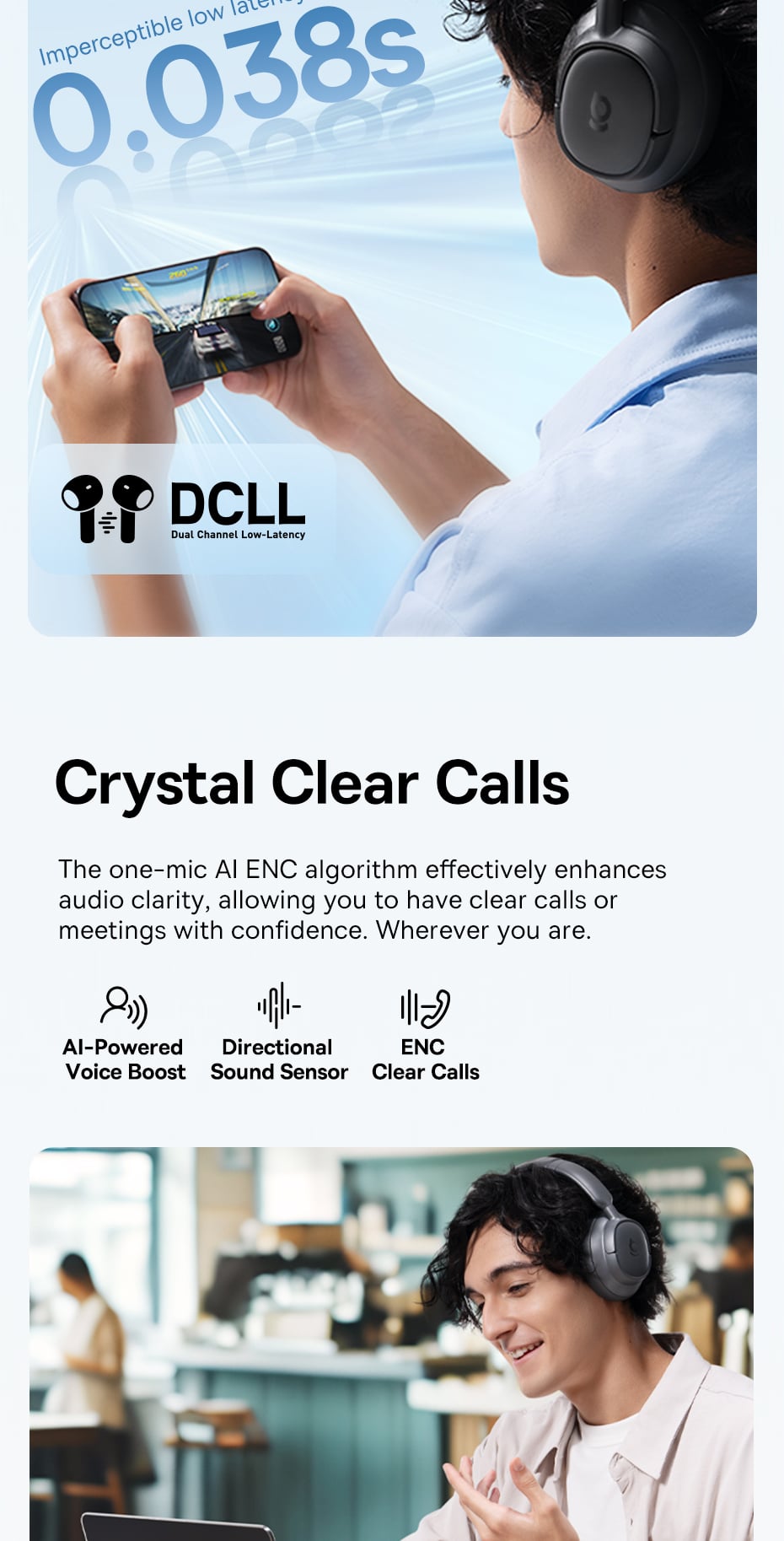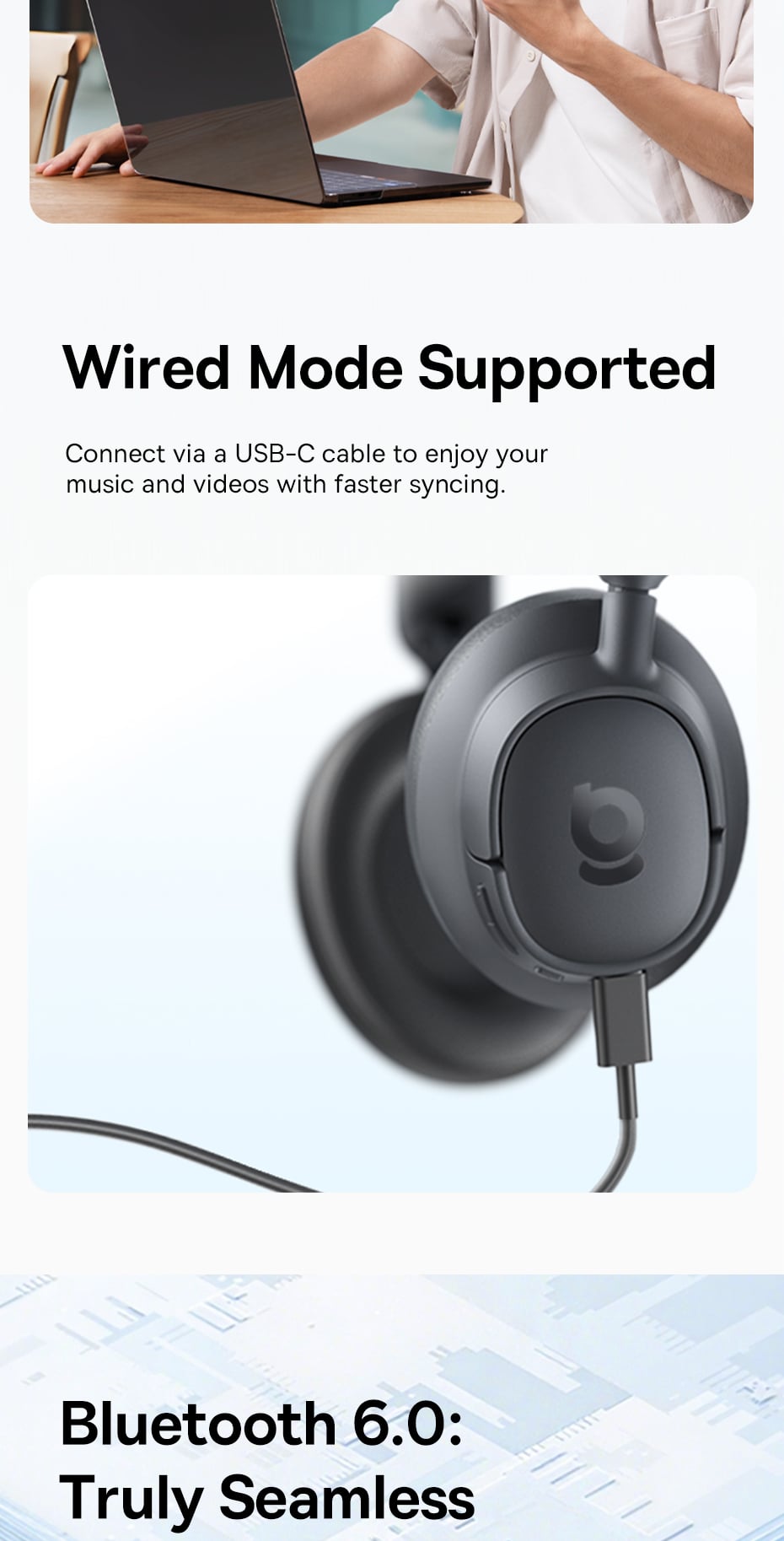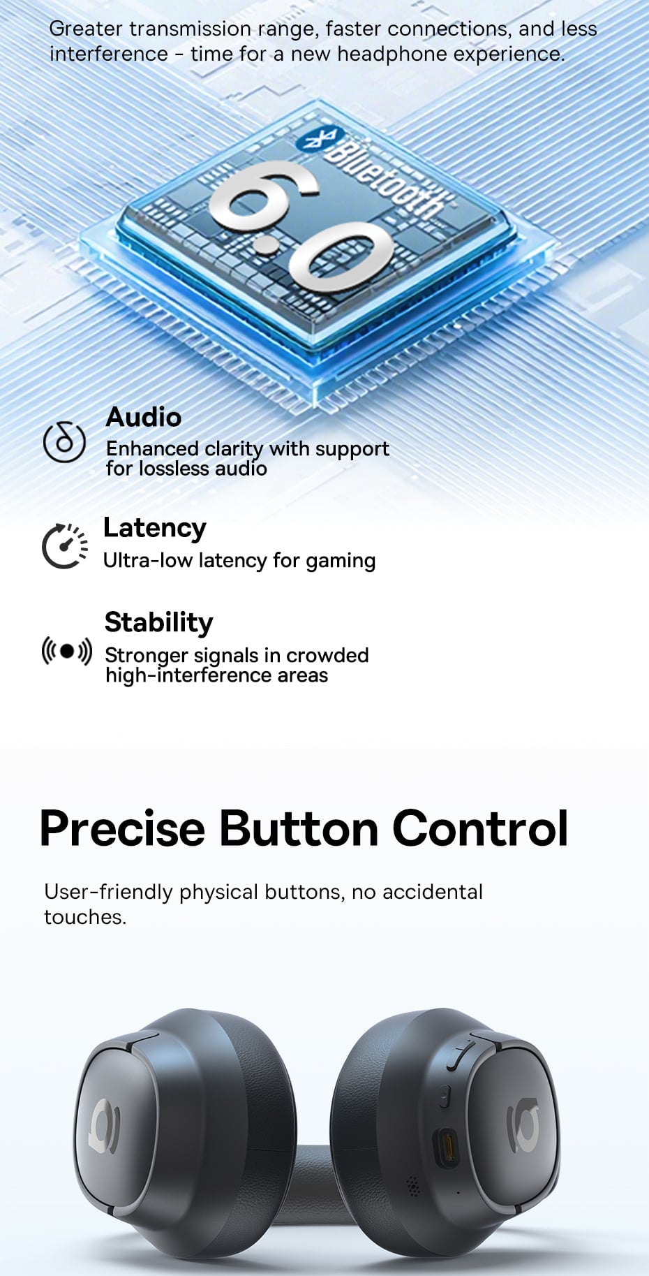 Sử dụng công nghệ Bluetooth 6.0 mới nhất, tai nghe đảm bảo kết nối ổn định và độ trễ thấp, lý tưởng cho cả việc xem phim và chơi game.