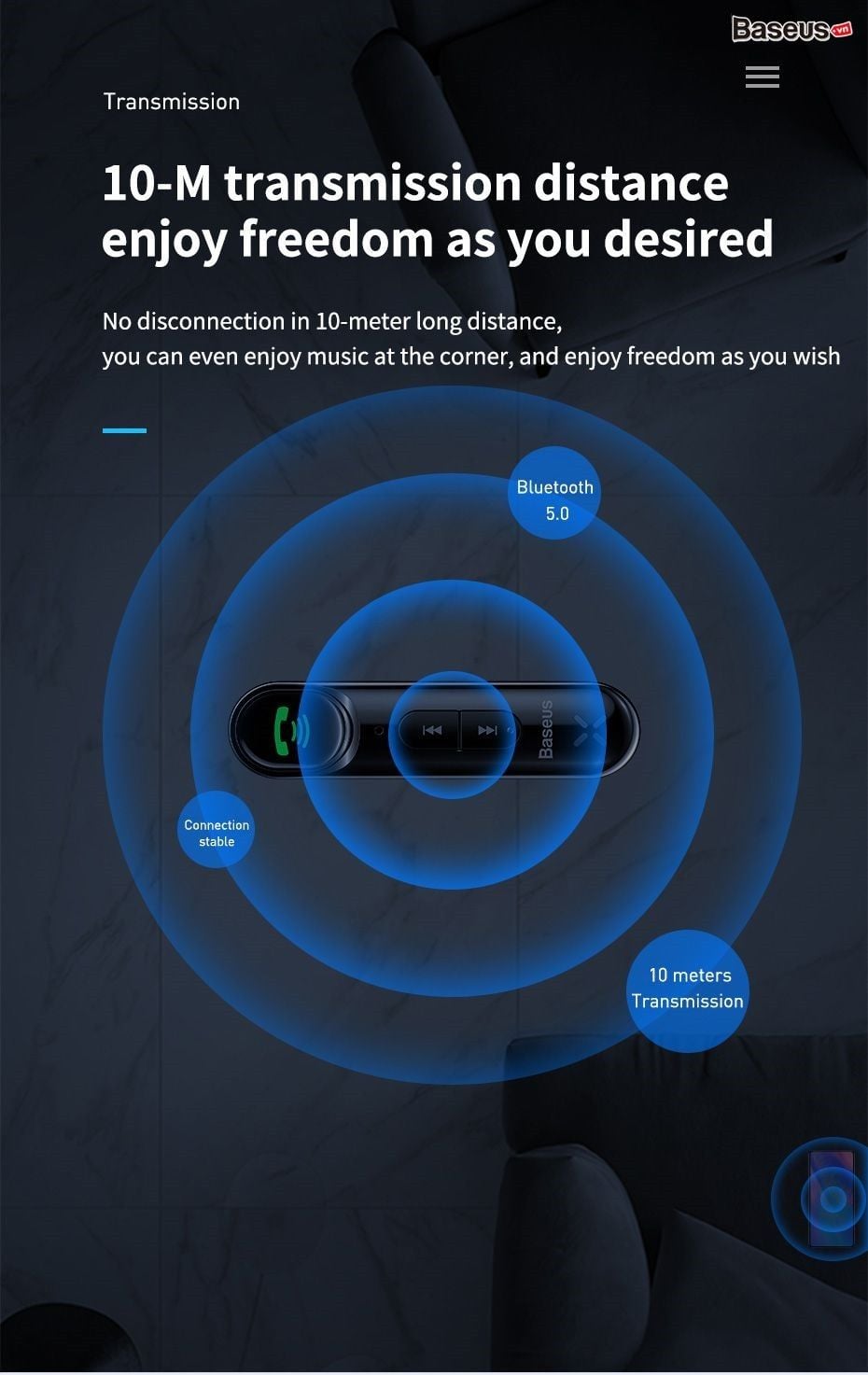 – Biến tai nghe có dây hoặc các dàn âm thanh thông thường từ có dây thành tai nghe không dây. Có thể phát nhạc truyền từ điện thoại qua Bluetooth.