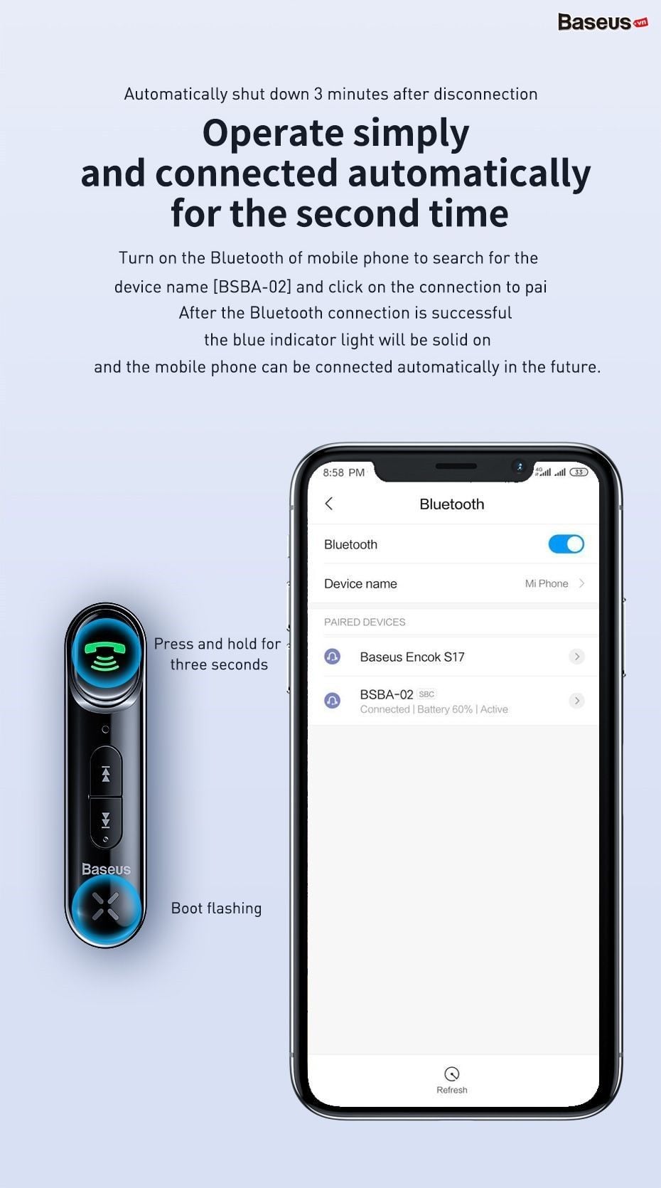 – Sử dụng kết nối Bluetooth V5.0, giúp kết nối dễdàng và nhanh chóng hơn, tiết kiệm pin hơn. Được trang bị pin sạc dung lượng 145mAh , cho thời gian sử dụng tối đa lên đến 8 giờ.