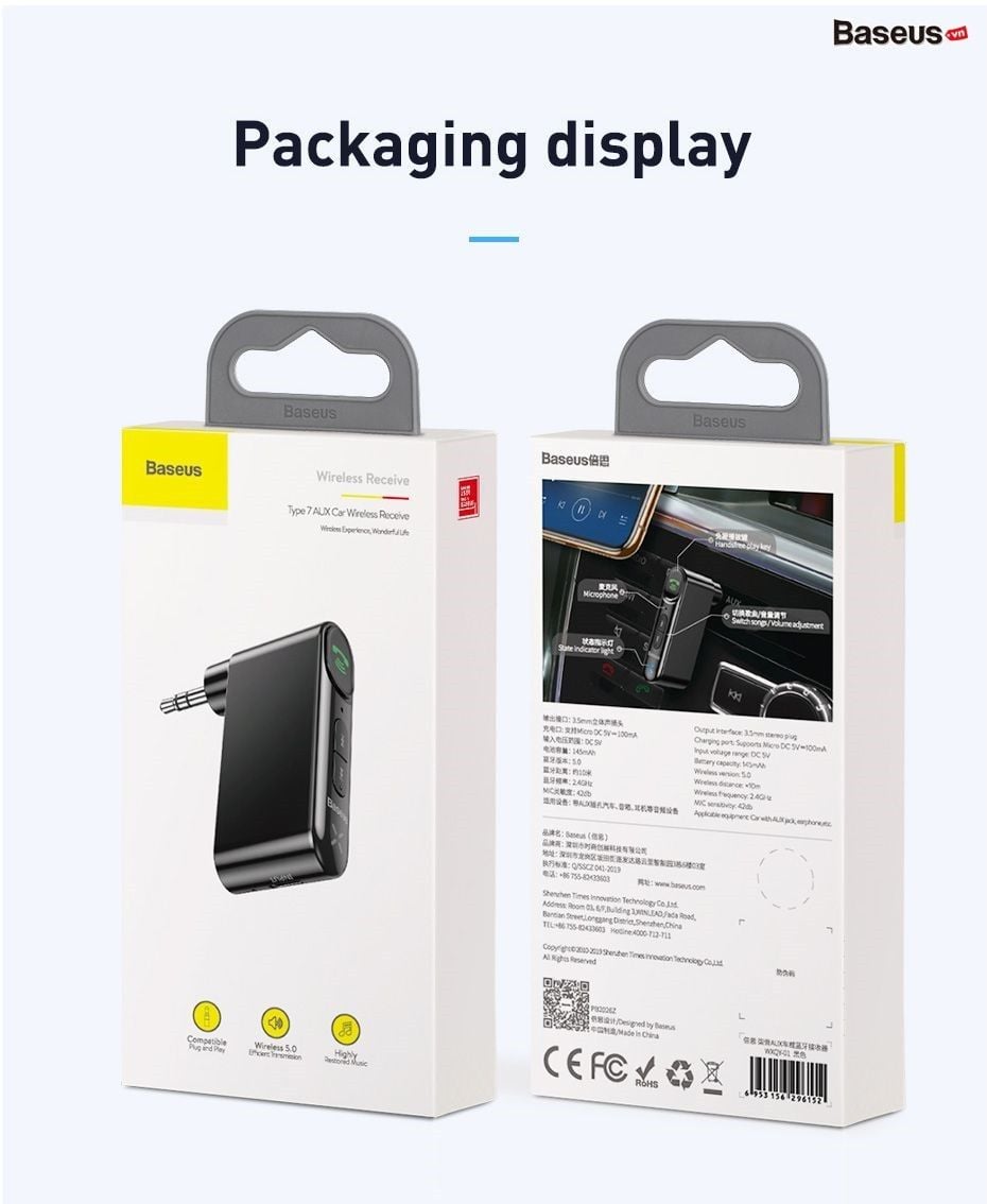 Hình ảnh chi tiết Bộ Bluetooth Receiver dùng cho xe hơi Baseus Qiyin AUX ( Car AUX 3.5mm Bluetooth Receiver/ Adapter)