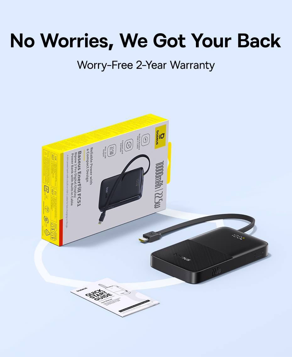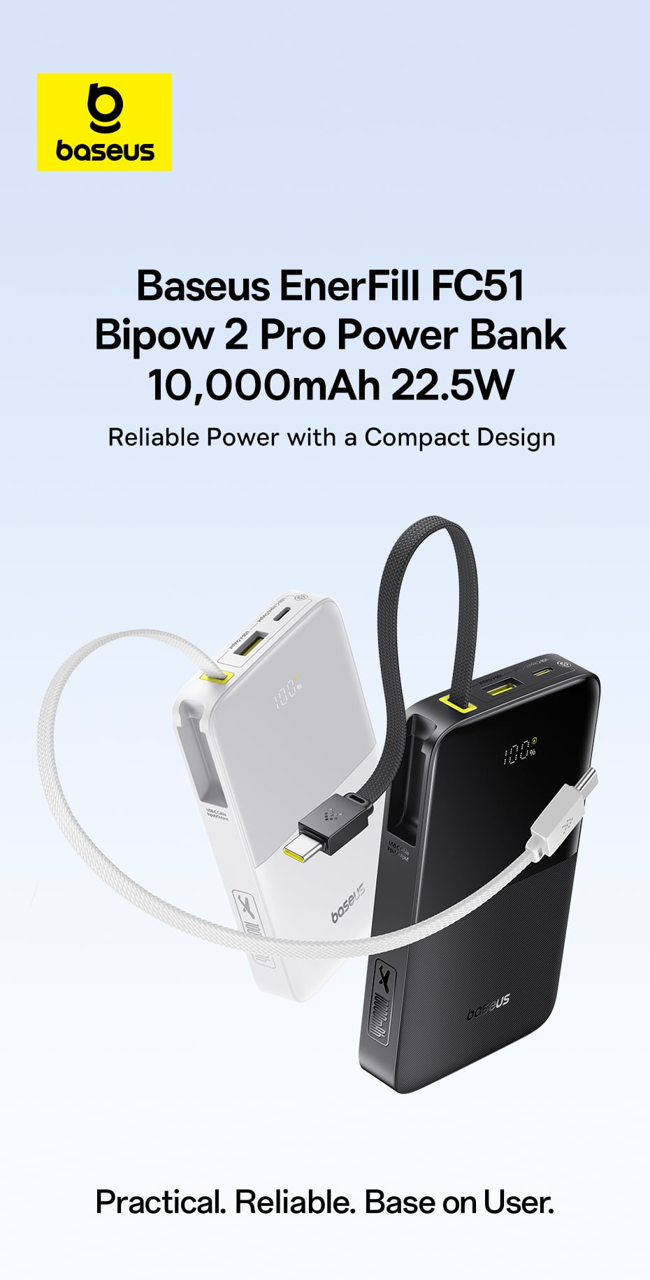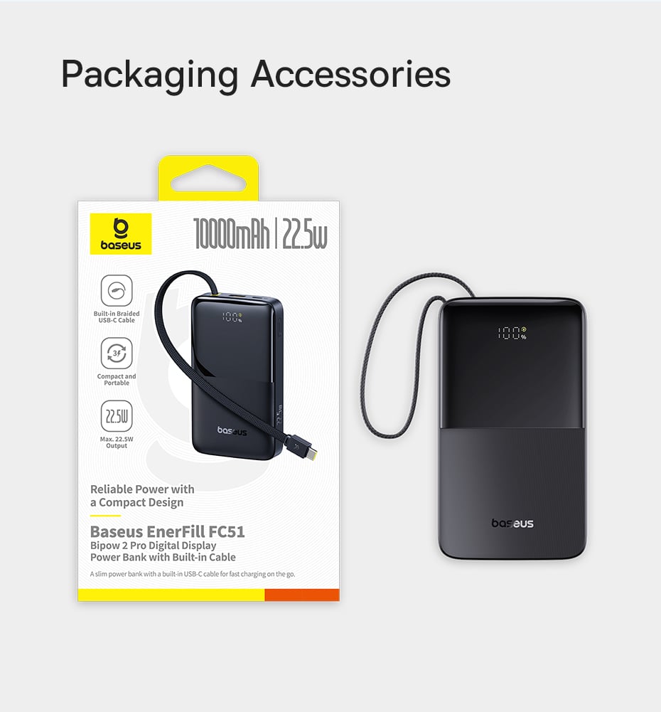 Giới thiệu Pin Dự Phòng Baseus EnerFill FC51 Bipow 2 Pro 22.5W (10000mAh, Digital Display, with Type-C Built-in Cable, 2C+1A)