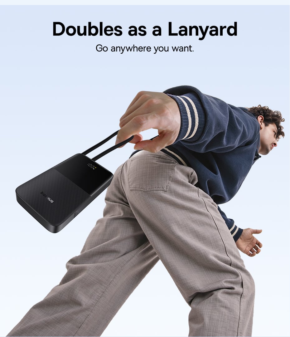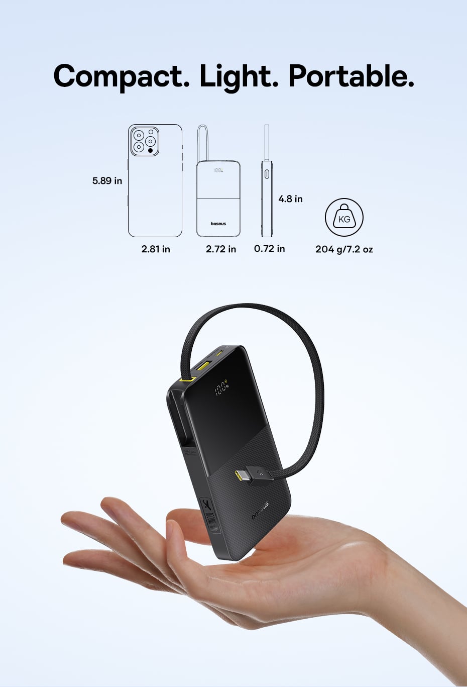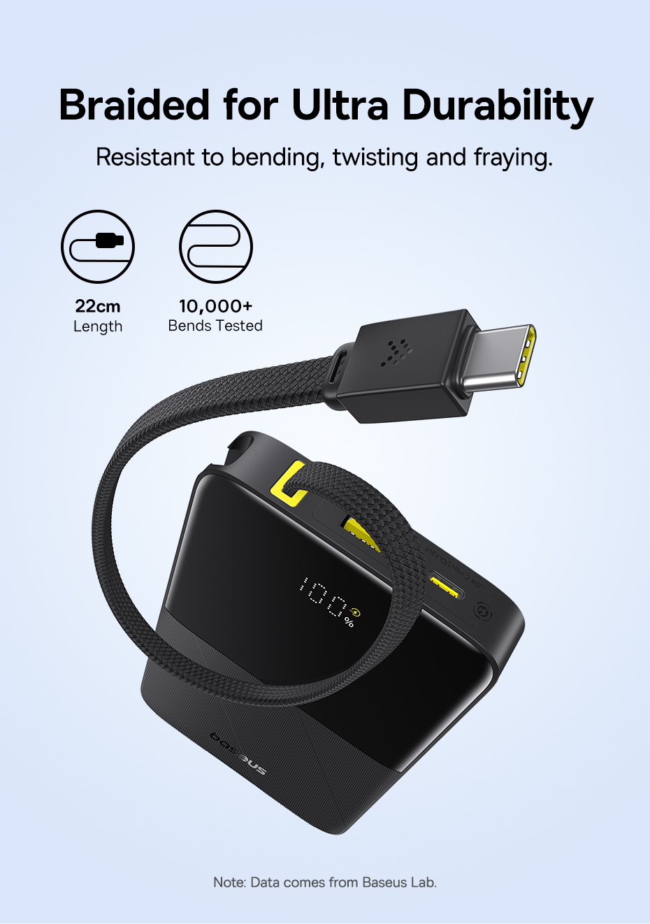 Sản phẩm được trang bị sẵn một cáp USB-C bện chắc chắn, mang lại sự tiện lợi tối đa và loại bỏ nhu cầu mang theo cáp riêng.