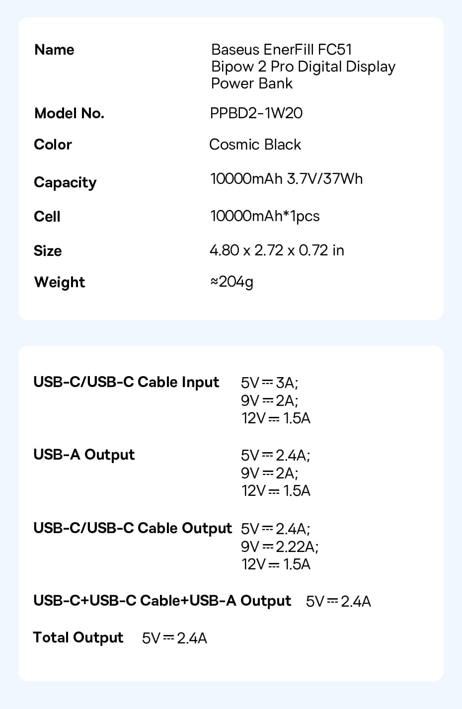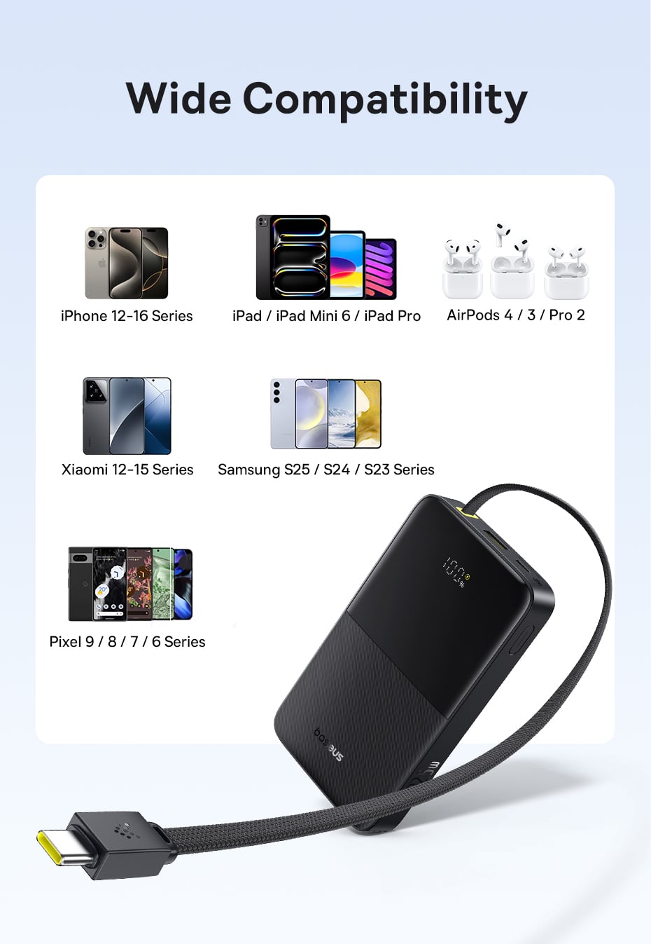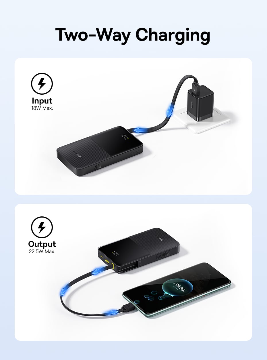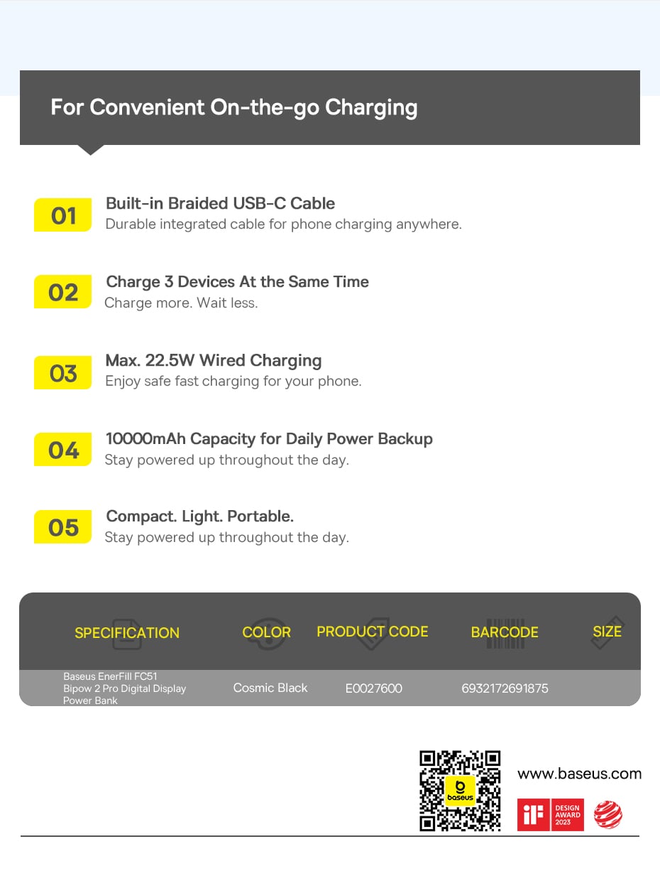 Tính năng Pin Dự Phòng Baseus EnerFill FC51 Bipow 2 Pro 22.5W (10000mAh, Digital Display, with Type-C Built-in Cable, 2C+1A)