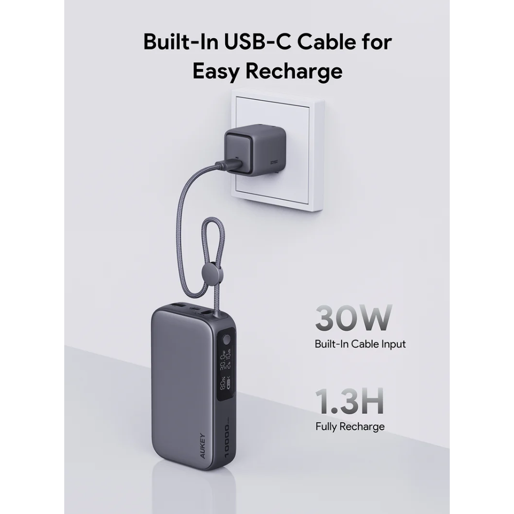 Tính năng Pin Dự Phòng AUKEY PB-Y47 10000mAh 30W (1*Type-C + 1*USB-A Port + Built-in Type-C cable, Digital Display)