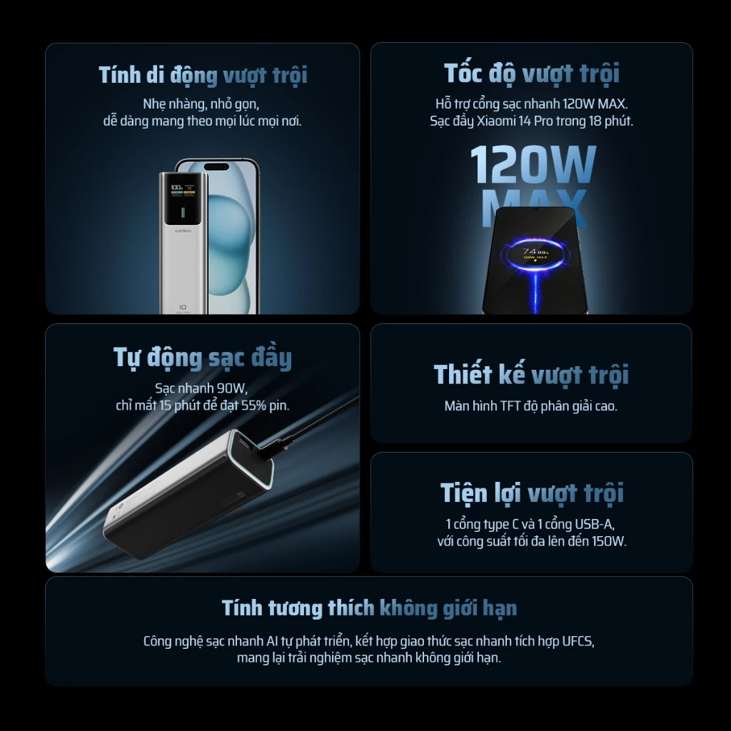 Nếu bạn đang tìm kiếm một viên pin dự phòng vượt ra khỏi những tiêu chuẩn sạc thông thường, đủ mạnh để “cân” từ điện thoại, máy tính bảng cho đến laptop mỏng nhẹ, thì CUKTECH 10 (Model PB100P) chính là một thiết bị đột phá. Sự kết hợp giữa dung lượng tối ưu, công suất khổng lồ và thiết kế đậm chất công nghệ khiến nó trở thành phụ kiện lý tưởng cho những người dùng đa thiết bị.