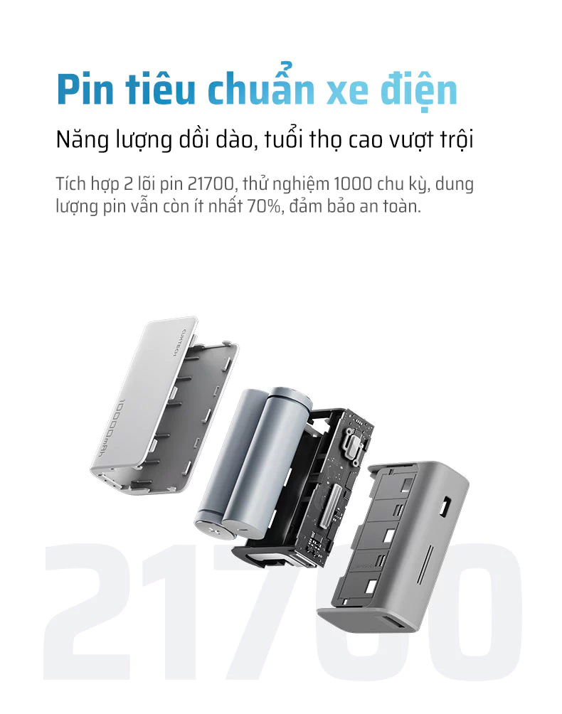 Sử dụng lõi pin Lithium-ion chất lượng cao, Cuktech CP13 không chỉ đảm bảo hiệu suất sạc ổn định mà còn an toàn tuyệt đối cho cả người dùng và thiết bị trong suốt quá trình sử dụng.