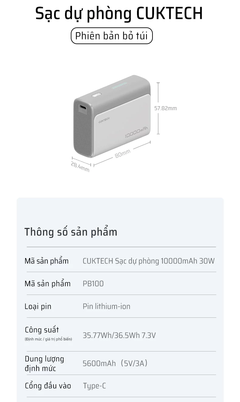 Trong thế giới công nghệ không ngừng chuyển động, việc sở hữu một nguồn năng lượng dự phòng nhỏ gọn, mạnh mẽ là điều cần thiết. Pin sạc dự phòng Cuktech CP13 10000mAh 30W chính là giải pháp hoàn hảo, kết hợp tinh tế giữa thiết kế siêu di động và công nghệ sạc nhanh đỉnh cao, đảm bảo các thiết bị của bạn luôn sẵn sàng hoạt động.