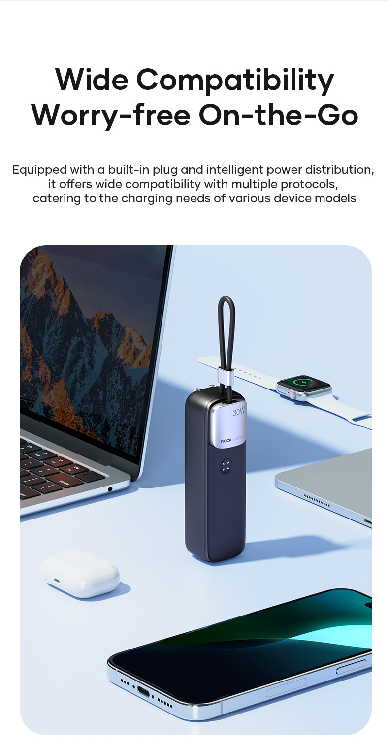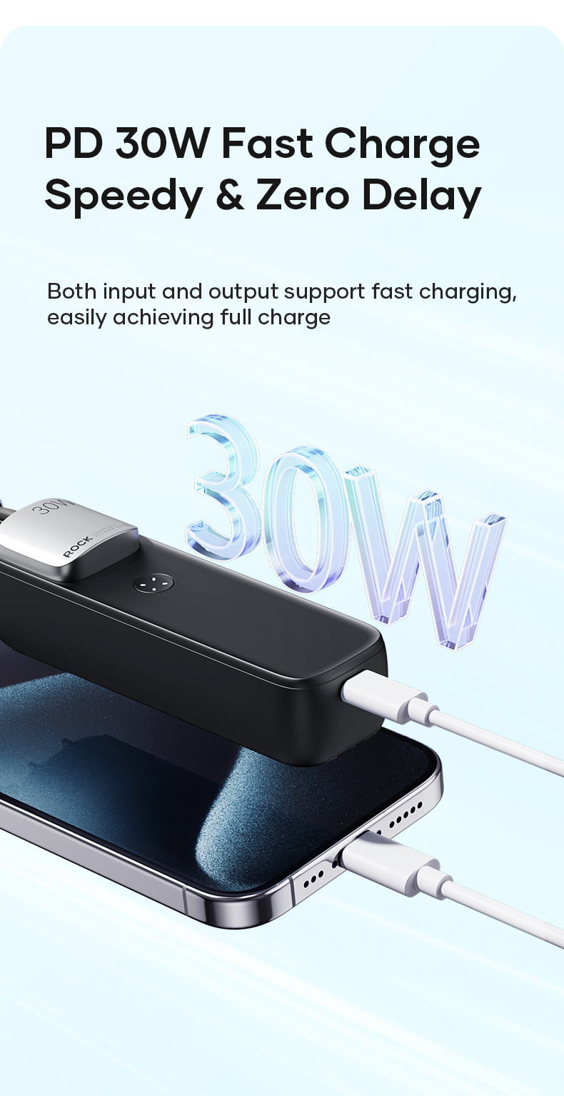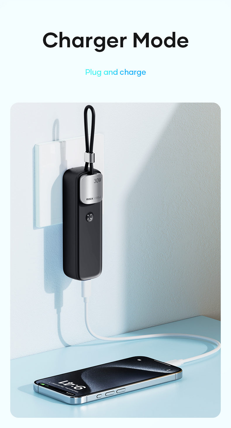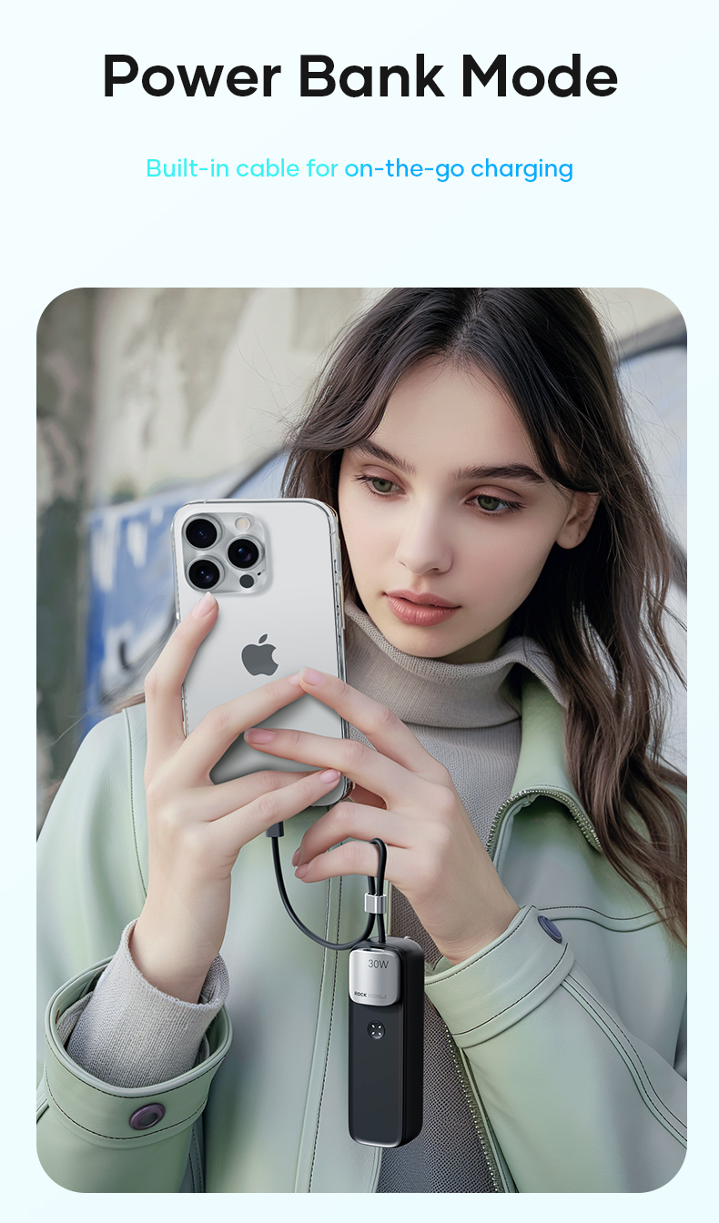 Hình Ảnh Pin Dự Phòng Kiêm Củ Sạc ROCK Portable with GaN PD20W/PD30W Wall Charger 5000mAh