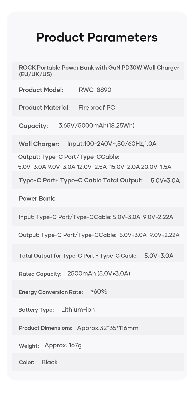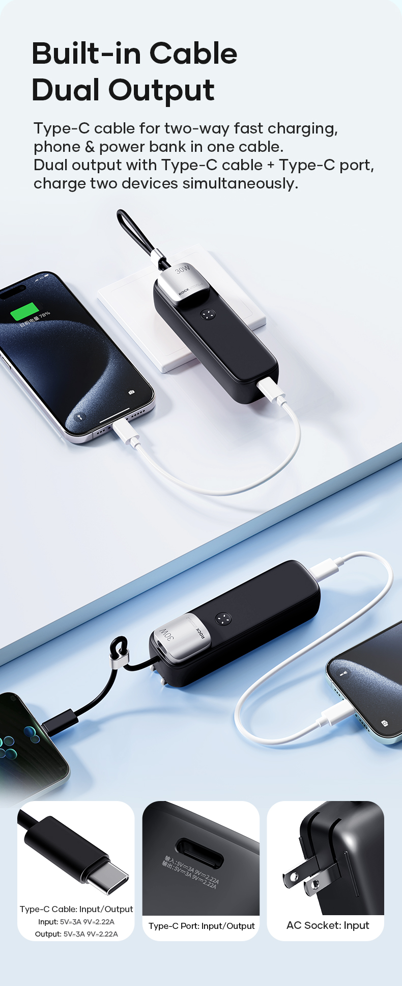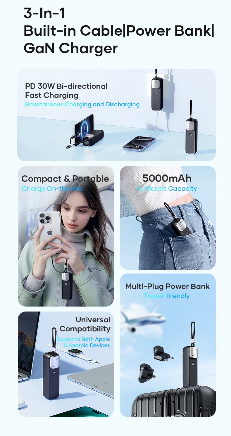 Hình Ảnh Pin Dự Phòng Kiêm Củ Sạc ROCK Portable with GaN PD20W/PD30W Wall Charger 5000mAh