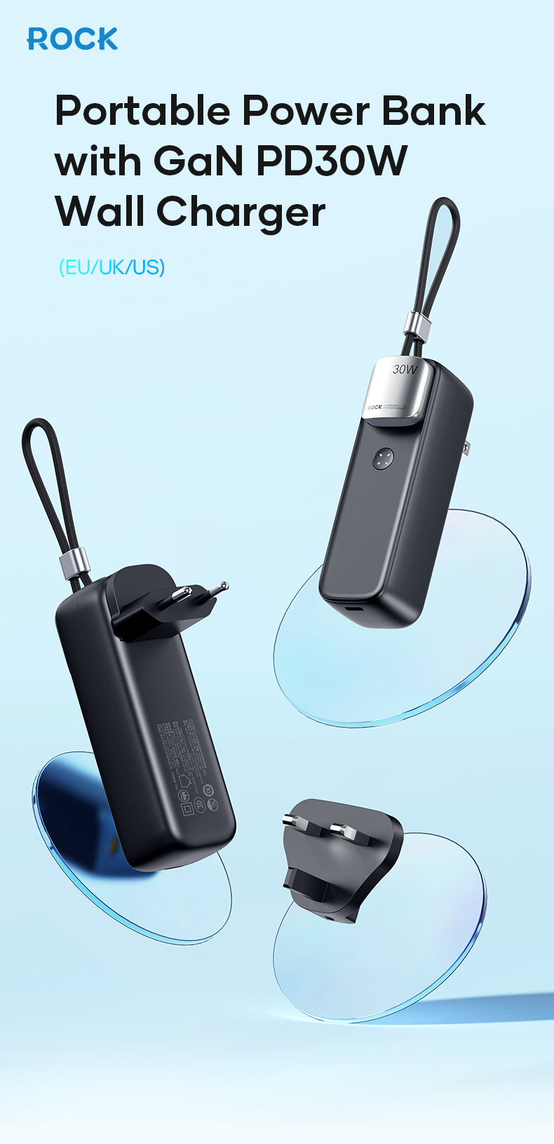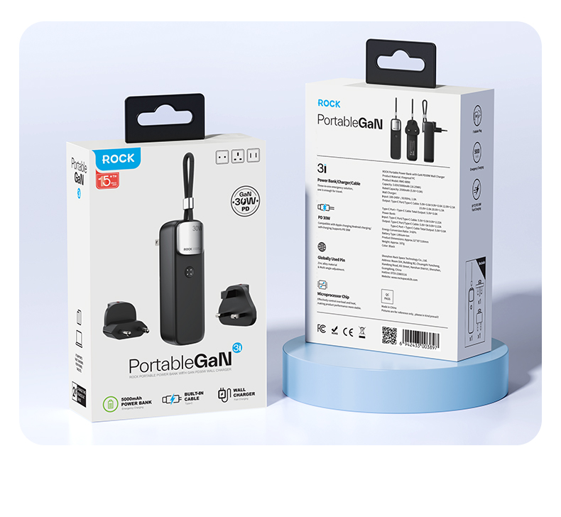 Giới thiệu Pin Dự Phòng Kiêm Củ Sạc ROCK Portable with GaN PD20W/PD30W Wall Charger 5000mAh