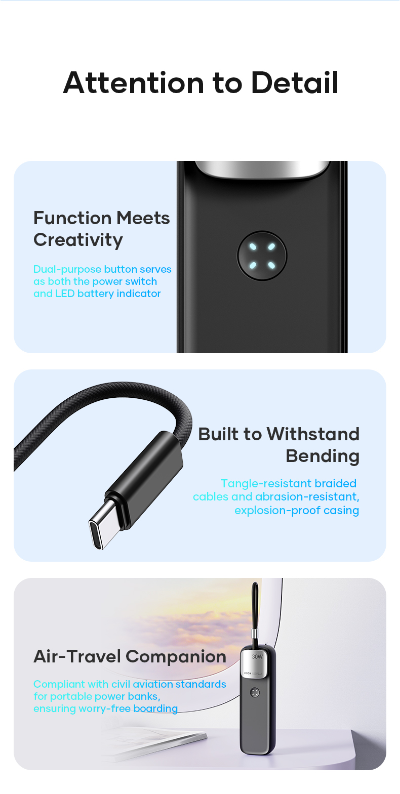 Tính năng Pin Dự Phòng Kiêm Củ Sạc ROCK Portable with GaN PD20W/PD30W Wall Charger 5000mAh