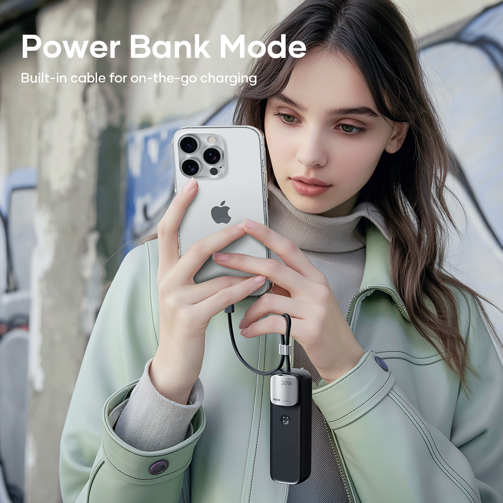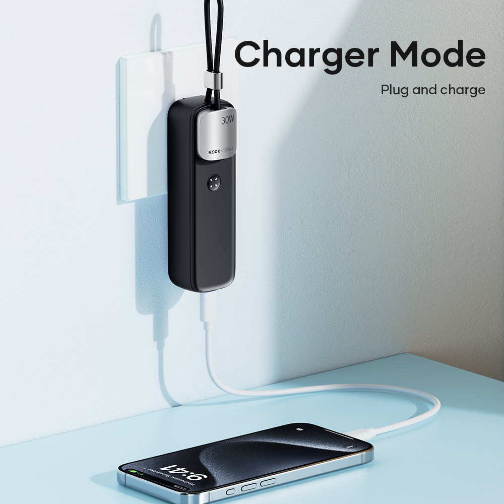Hình Ảnh Pin Dự Phòng Kiêm Củ Sạc ROCK Portable with GaN PD20W/PD30W Wall Charger 5000mAh