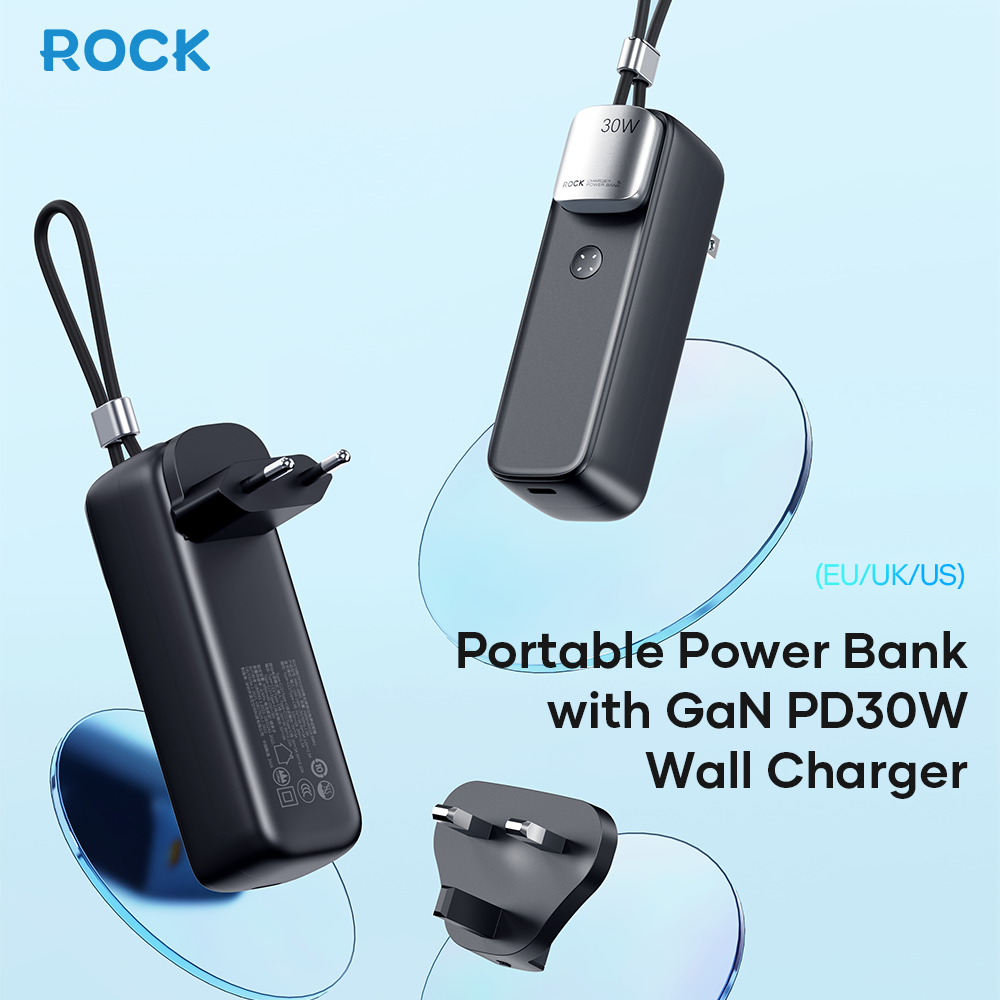 Giới thiệu Pin Dự Phòng Kiêm Củ Sạc ROCK Portable with GaN PD20W/PD30W Wall Charger 5000mAh
