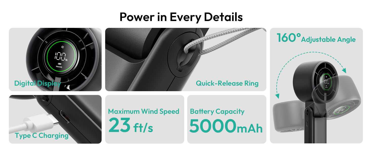• Tên tiếng Việt: Quạt Cầm Tay AECOOLY Halo 02 5000mAh (7000rpm, 22H, 5-Speed Level Adjustment, Dual Air Channels, Ultra-High Wind Power, Foldable and placed on the desktop, Versatile Handheld/Desktop/Hanging Usage)