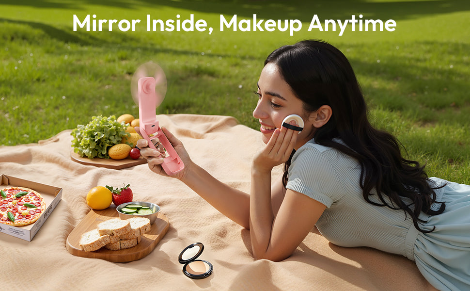 Gương được tích hợp trực tiếp trên thân quạt, giúp bạn có thể dễ dàng soi và chỉnh trang lại vẻ ngoài của mình mọi lúc mọi nơi. Điều này đặc biệt hữu ích khi bạn đang di chuyển hoặc ở những nơi không tiện có gương lớn.