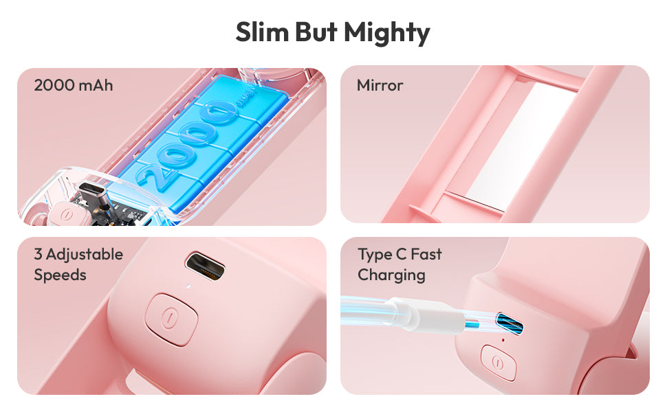 Hình Ảnh Quạt Cầm Tay AECOOLY Pocket 01 mirror (3500rpm, 3 Speed Settings, Foldable & Compact, 17H, 2000mAh, 55 dB Low Noise, With Mirror)