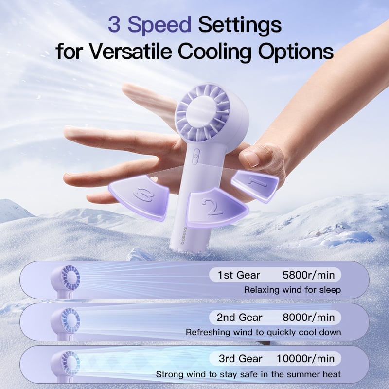 Tính năng Quạt Cầm Tay Baseus GoTrip DT1 Mini (1200mAh, Five-Blade Turbo Fan with 4 M/S Powerful Wind, 10000RPM, 39dB Quiet Operation, 4H, 3 Speed Settings)
