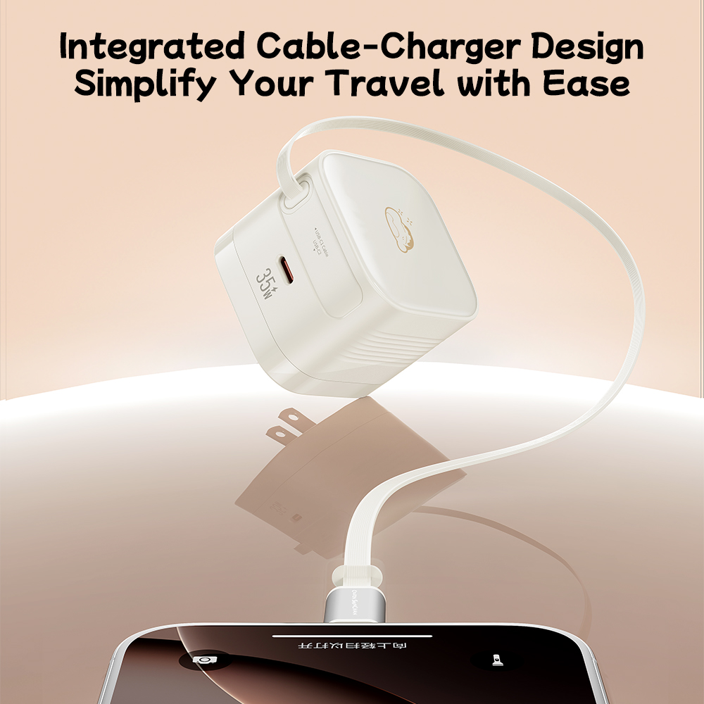 Thiết kế dây cáp thu gọn gắn sẵn bên trong củ sạc, giúp bạn không phải mang theo cáp rời mà vẫn linh hoạt khi cần dùng.
