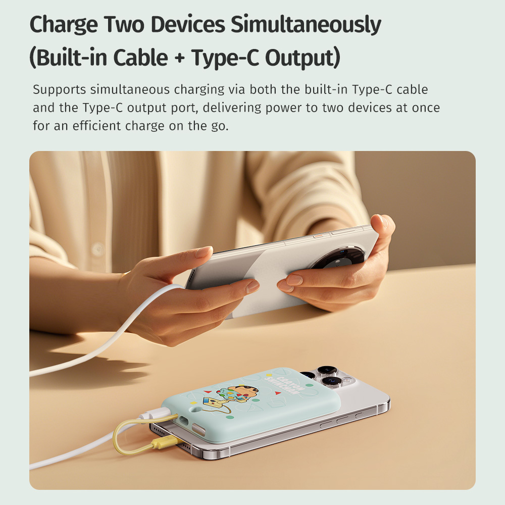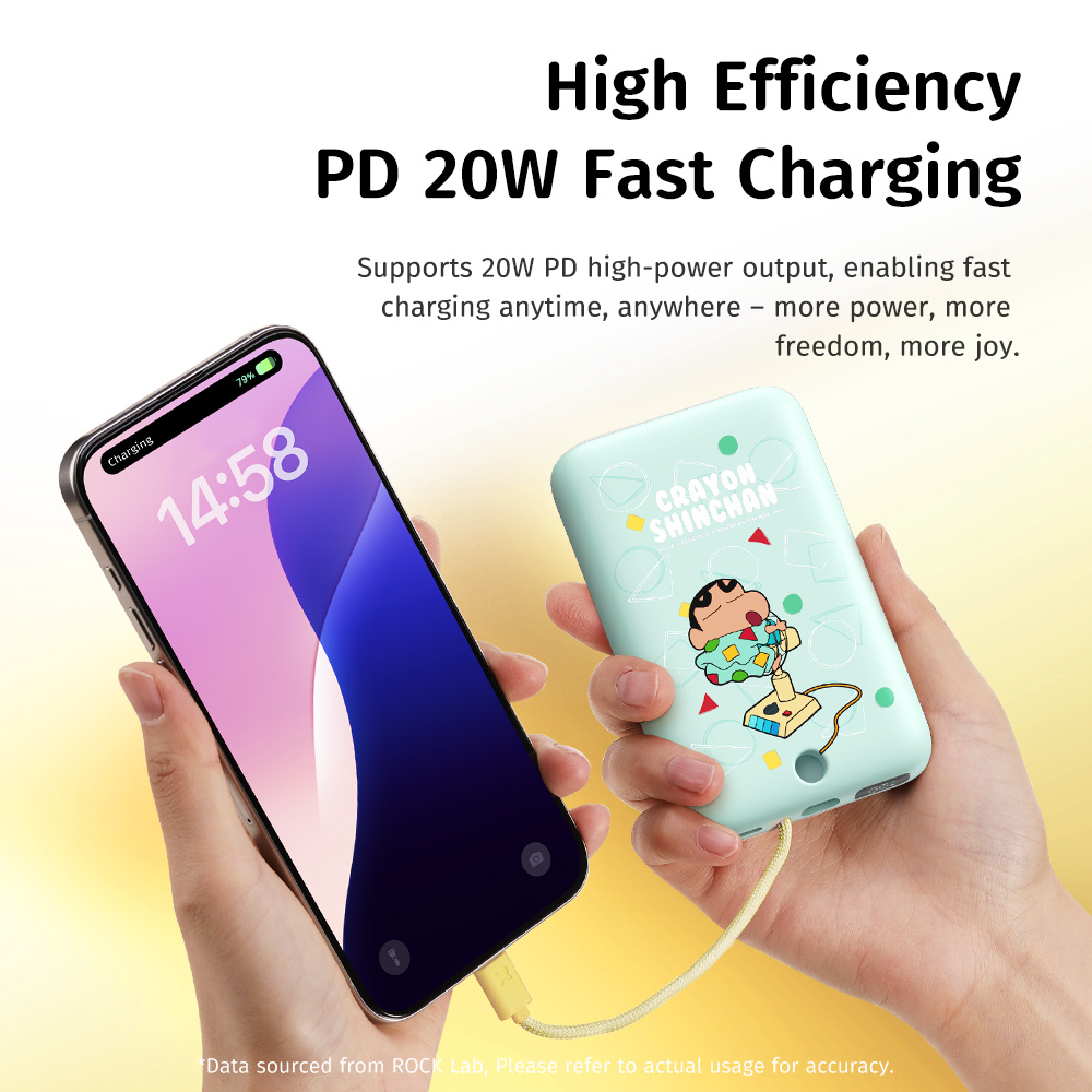 Tính năng Pin Dự Phòng ROCK Crayon Shinchan TieTie with Type-C Built-in Cable 10000mAh 20W