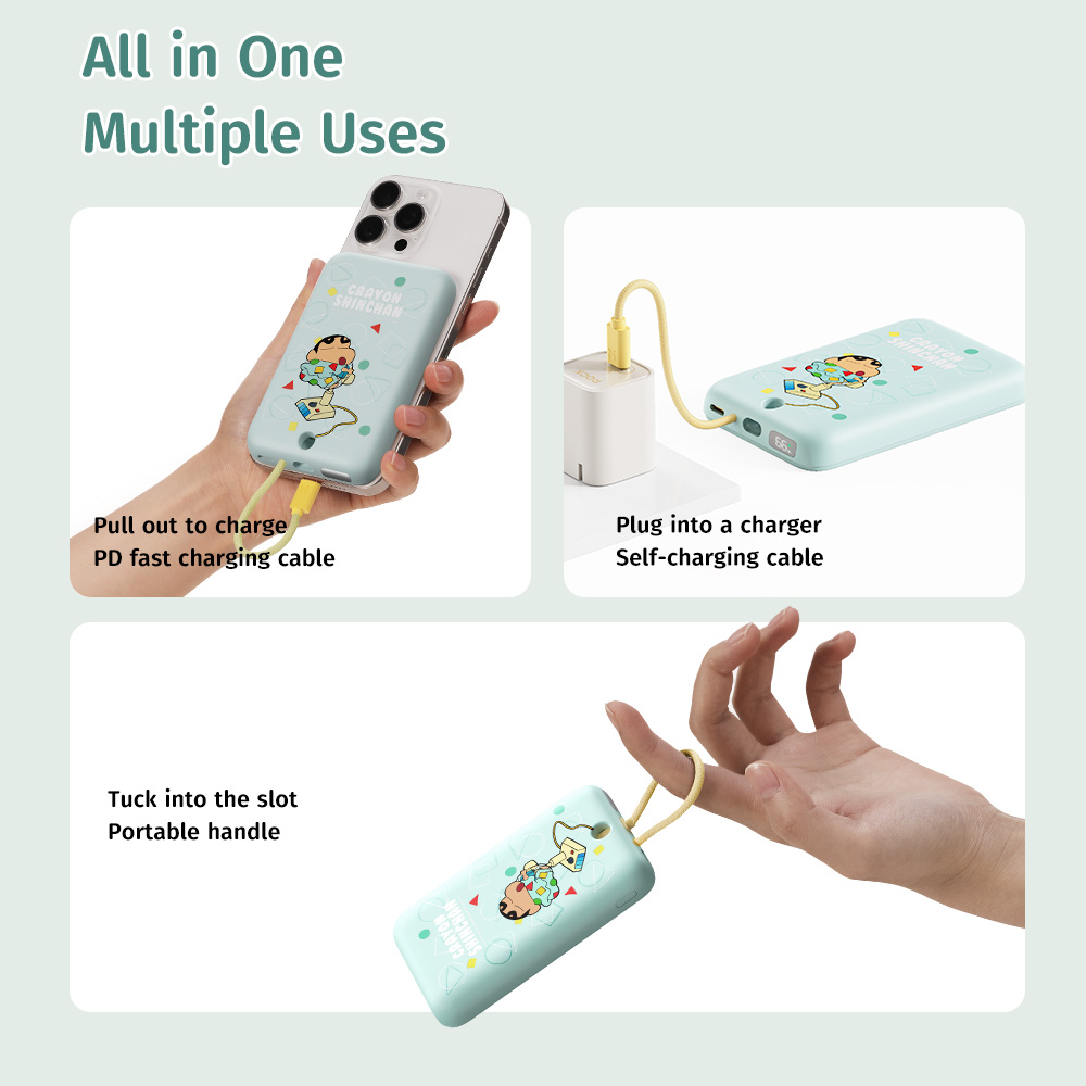 Hình Ảnh Pin Dự Phòng ROCK Crayon Shinchan TieTie with Type-C Built-in Cable 10000mAh 20W