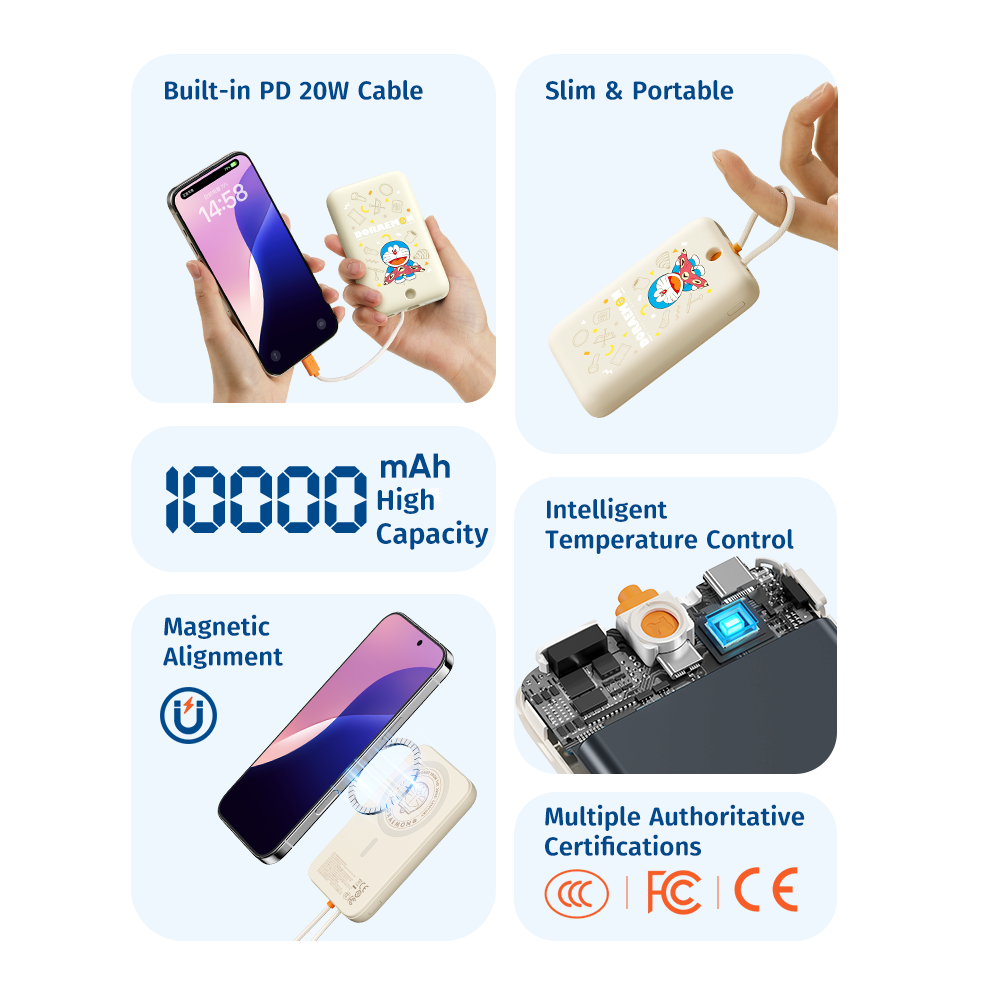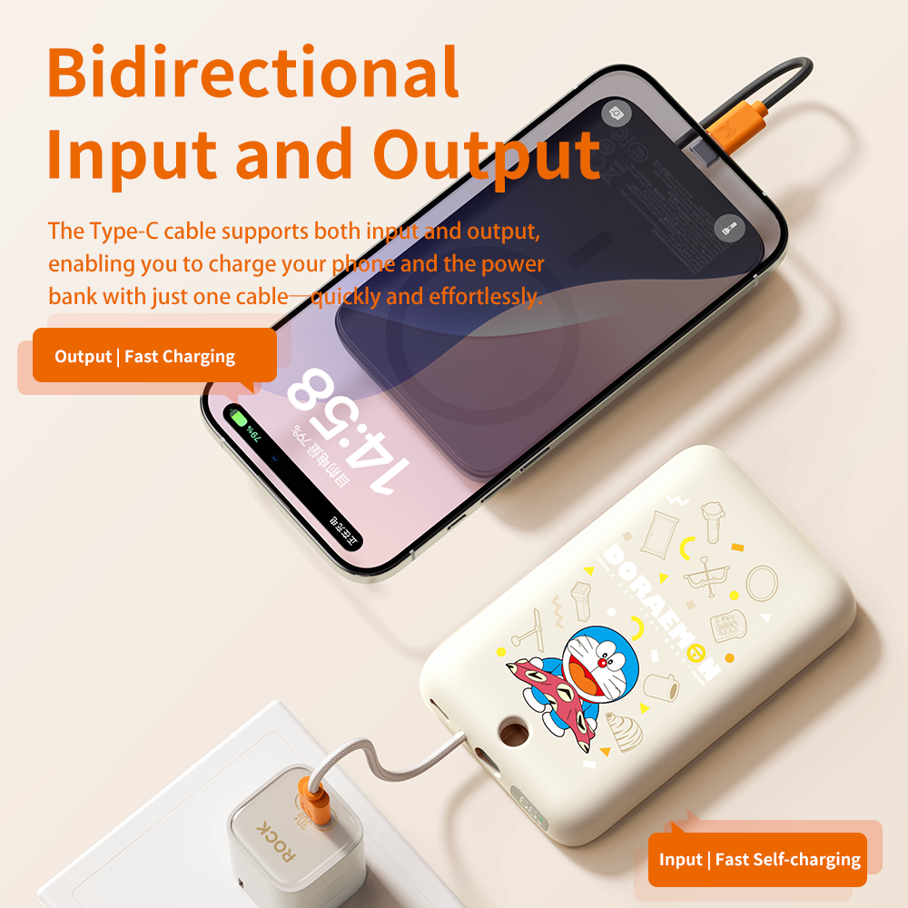 Tính năng Pin Dự Phòng ROCK Doraemon TieTie with Type-C Built-in Cable 10000mAh 20W