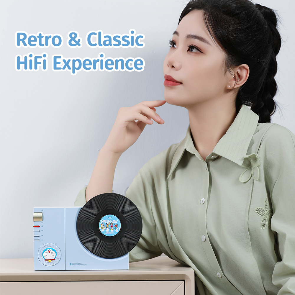 Giới thiệu Loa Di Động ROCK Doraemon Vintage Vinyl Record Player Style (Bluetooth v5.3, 6H, 1200mAh, EDR)