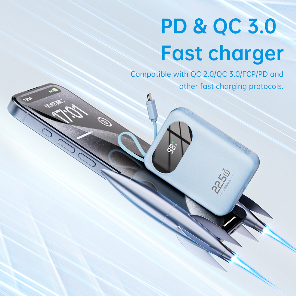 Pin sạc dự phòng ROCK Y11 Mini Series Power Bank with Cable 20000mAh – ( Purple )
