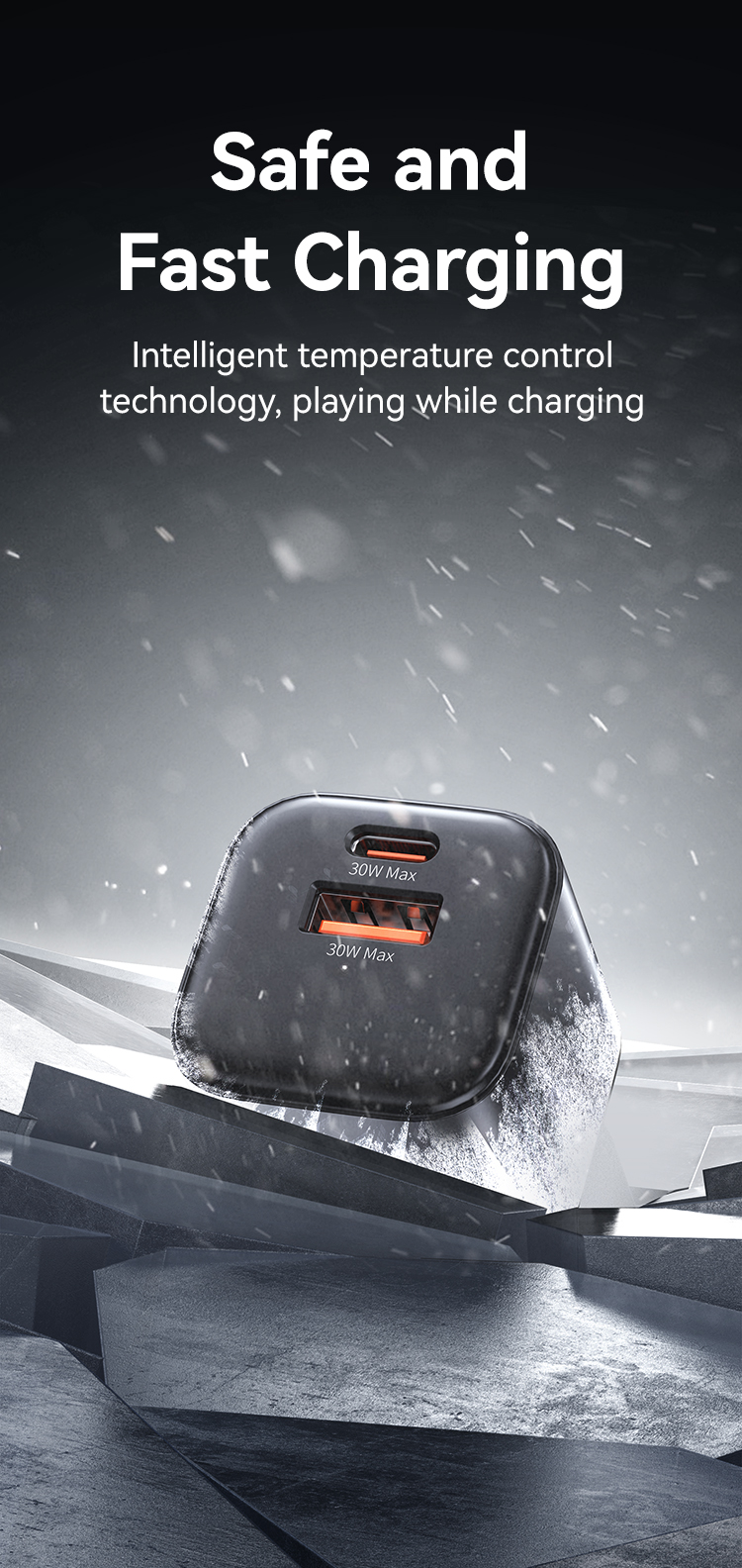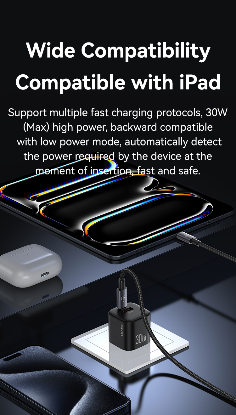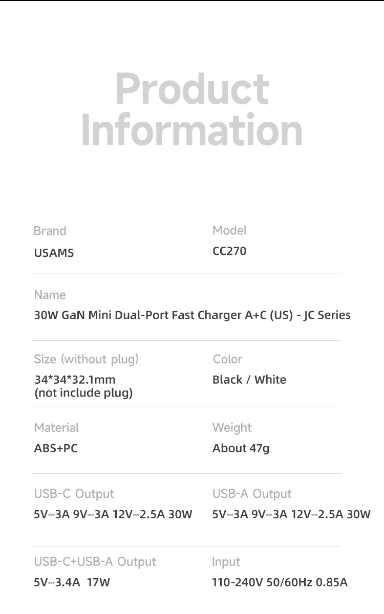 USAMS CC270 30W GaN Mini A+C Dual Ports Fast Charger (US) – JC Series – Black