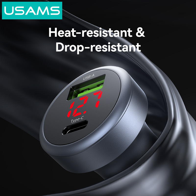 Hình Ảnh Tẩu Sạc Cho Ô Tô USAMS CC327 45W (1*Type-C + 1*USB-A Ports, Digital Display)
