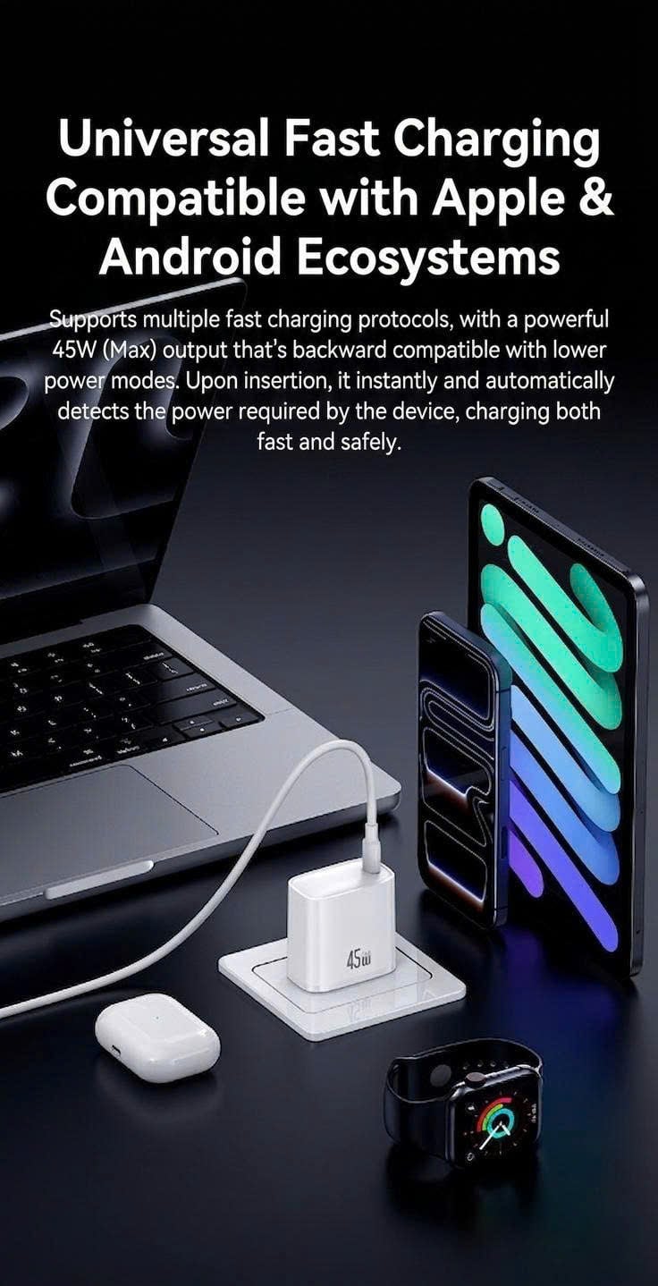 Công suất 45W – Tối ưu cho Laptop và Smartphone