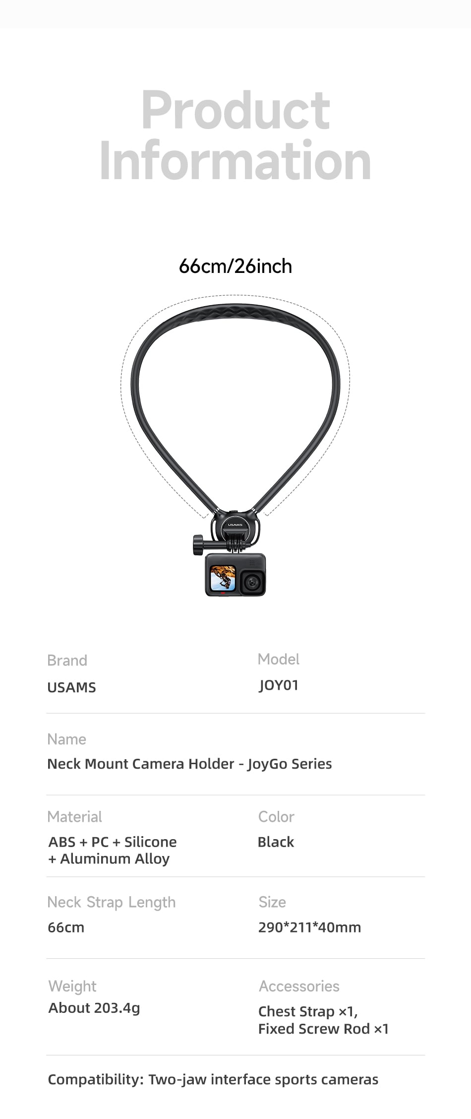 USAMS JOY01 Neck Mount Camera Holder (JoyGo Series) – BLACK
