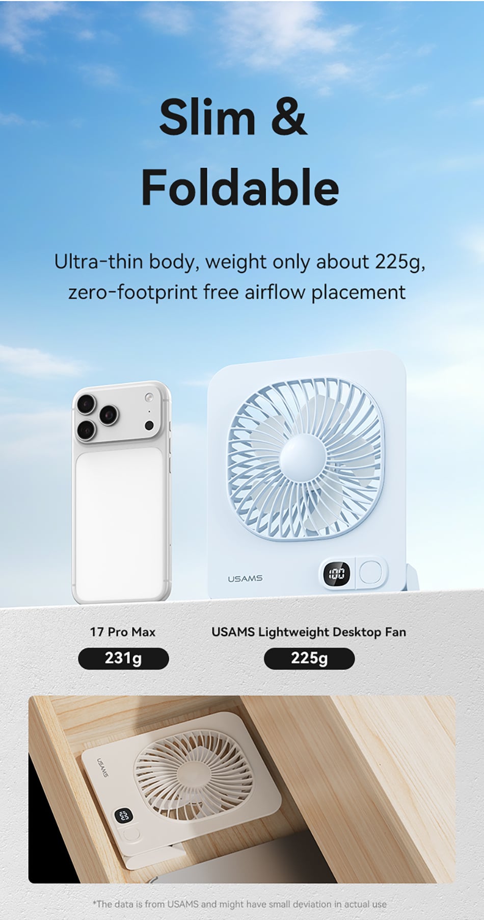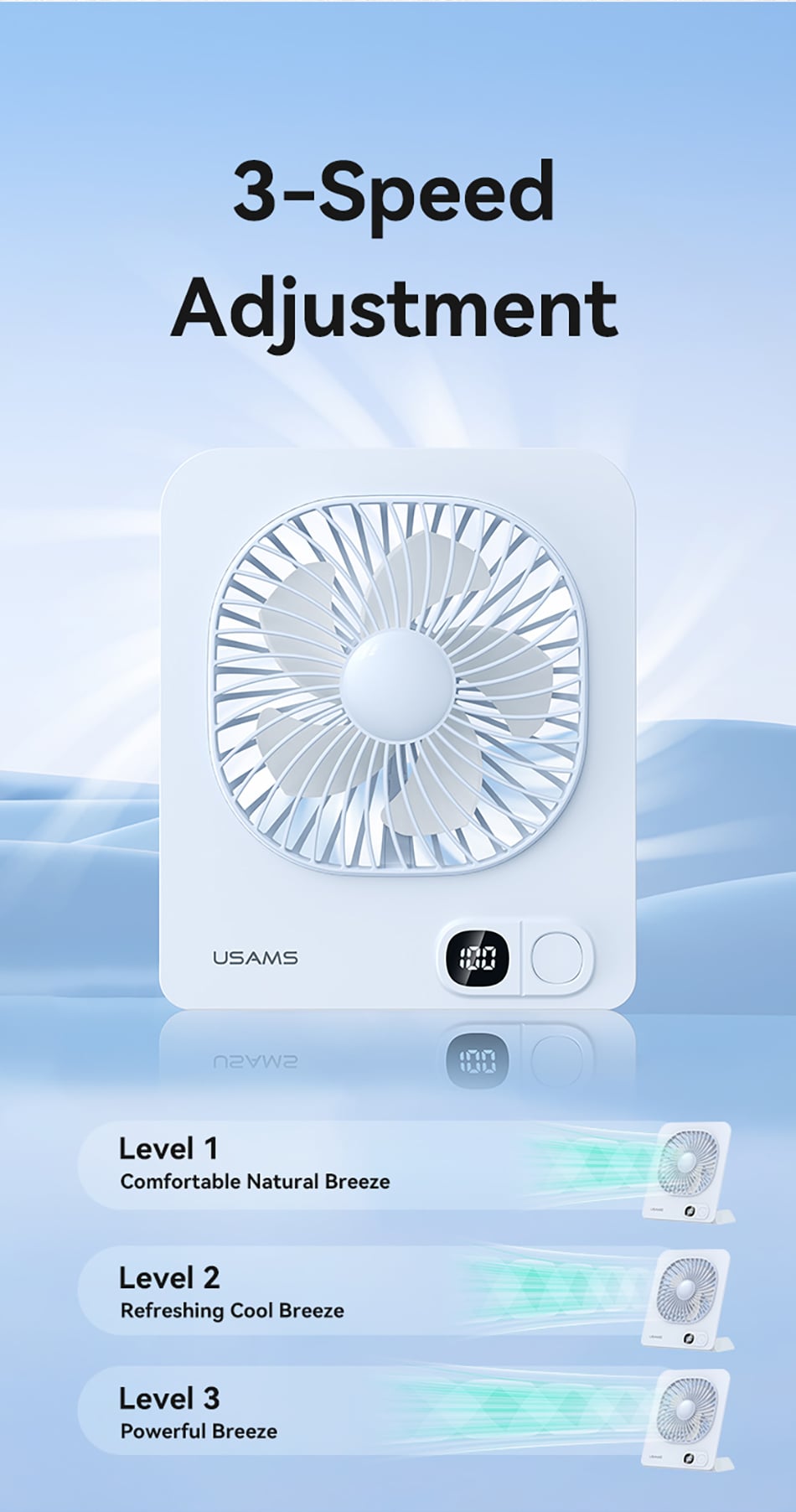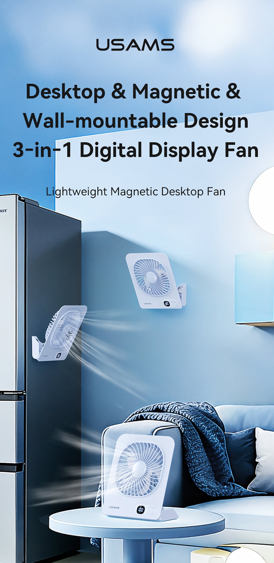 USAMS ZB363 Lightweight Magnetic Desktop Fan 2000mAh – BLUE
