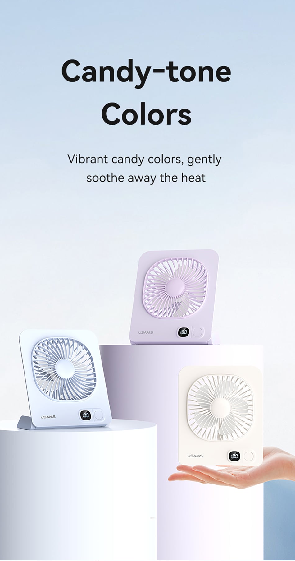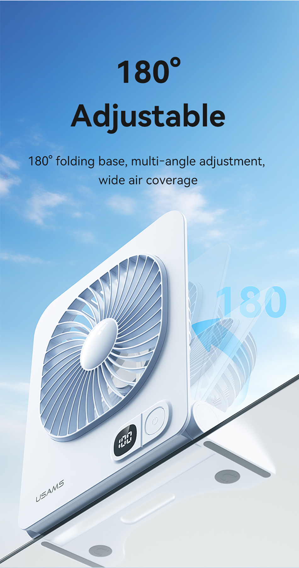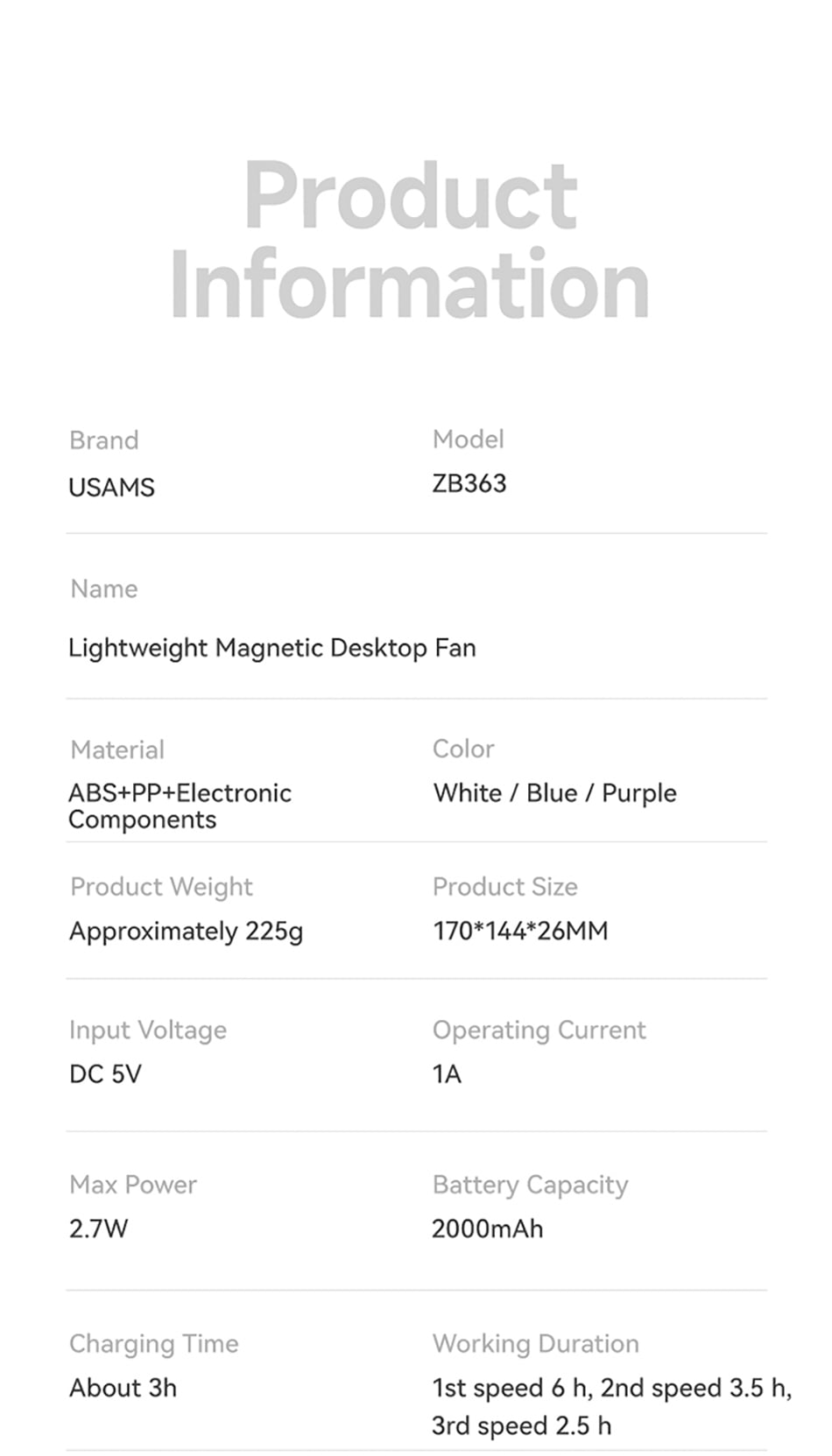 • Tên tiếng Việt: Quạt Để Bàn Kiêm Chân Đế Từ Tính USAMS ZB363 2.7W (2000mAh, 6H, 3-Speed Adjustment, Digital Display, 180° Adjustable)