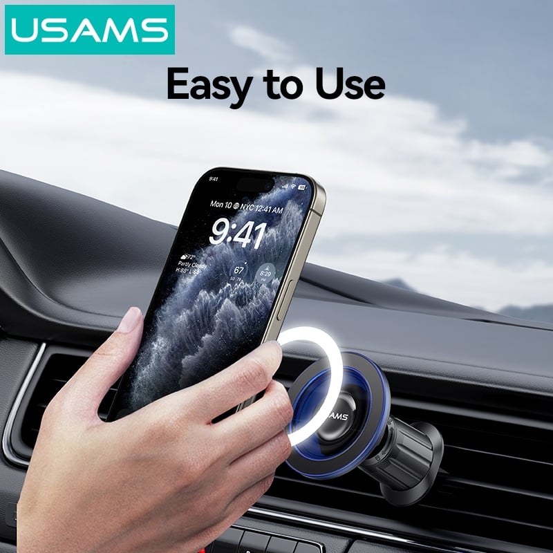 Giới thiệu Giá Đỡ Điện Thoại Nam Châm Trên Ô Tô USAMS ZJ081 (Air Vent Version, 360° Rotation, Strong Magnetic Adsorption)