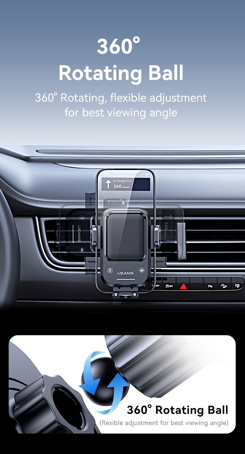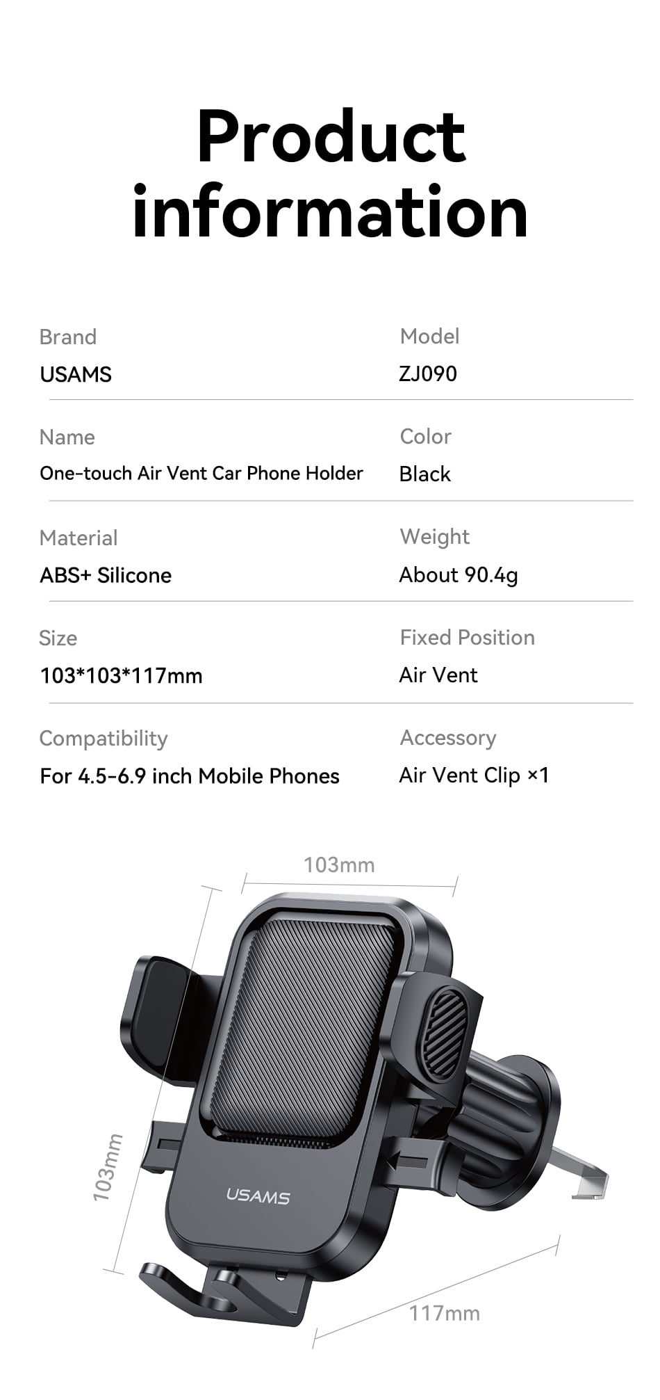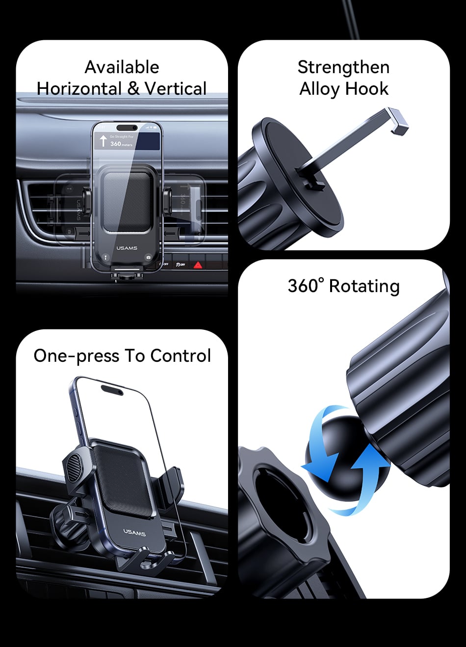 Tính năng Giá Đỡ Điện Thoại Cho Ô Tô USAMS ZJ090 (Air Vent Version, For 4.5-6.9″ Mobile Phones)