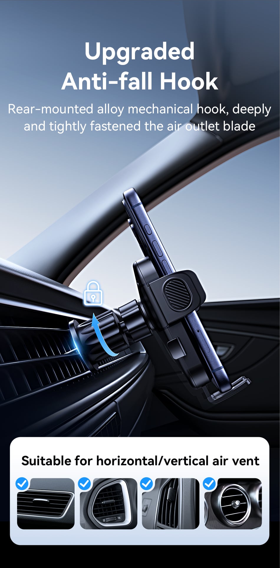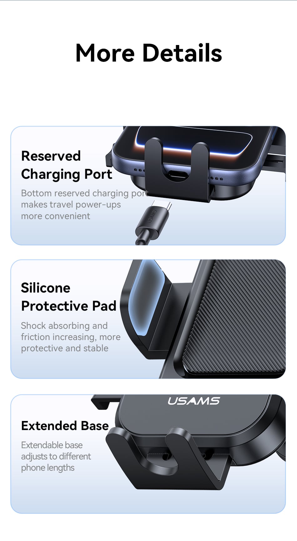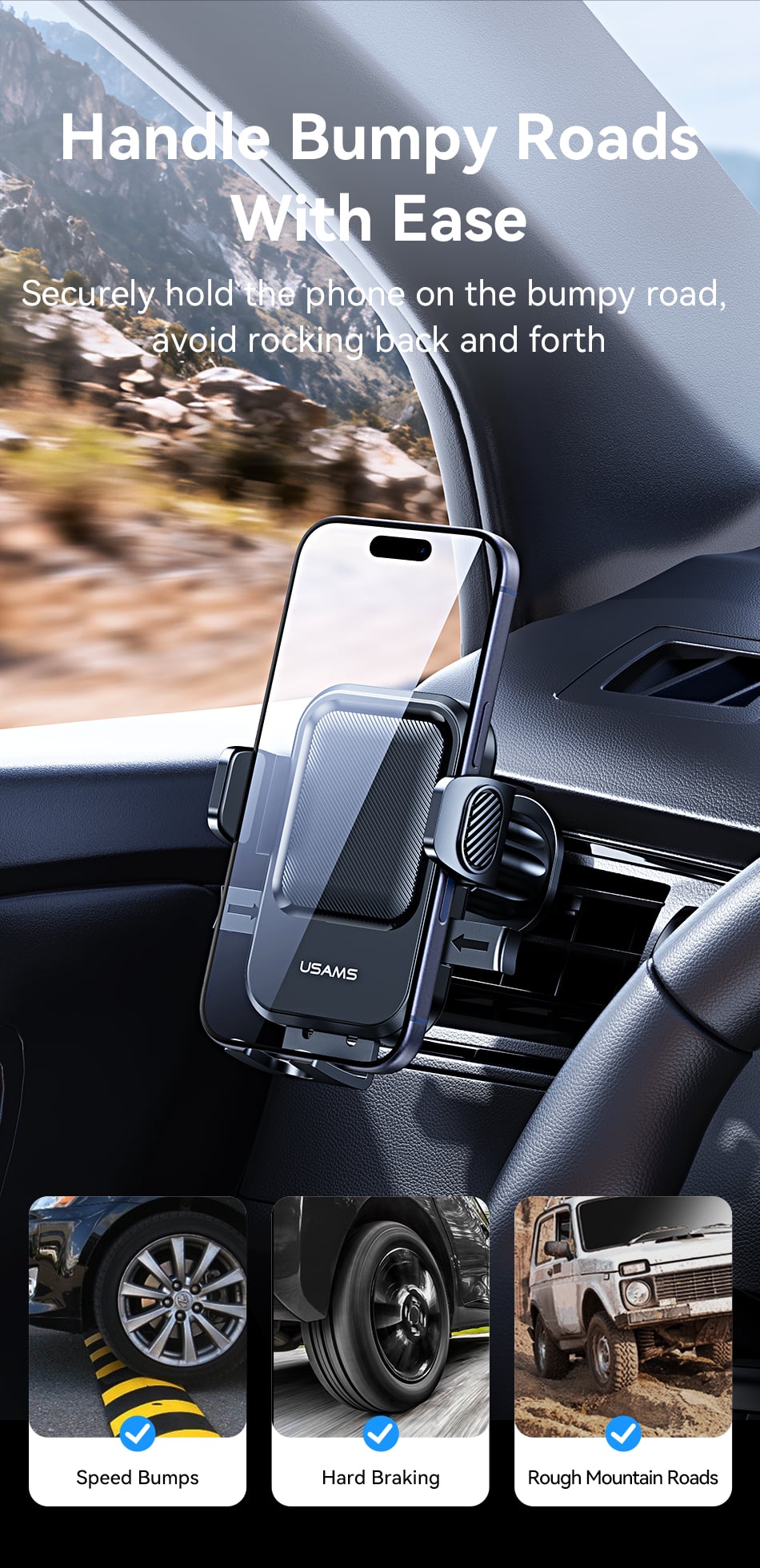 Tính năng Giá Đỡ Điện Thoại Cho Ô Tô USAMS ZJ090 (Air Vent Version, For 4.5-6.9″ Mobile Phones)