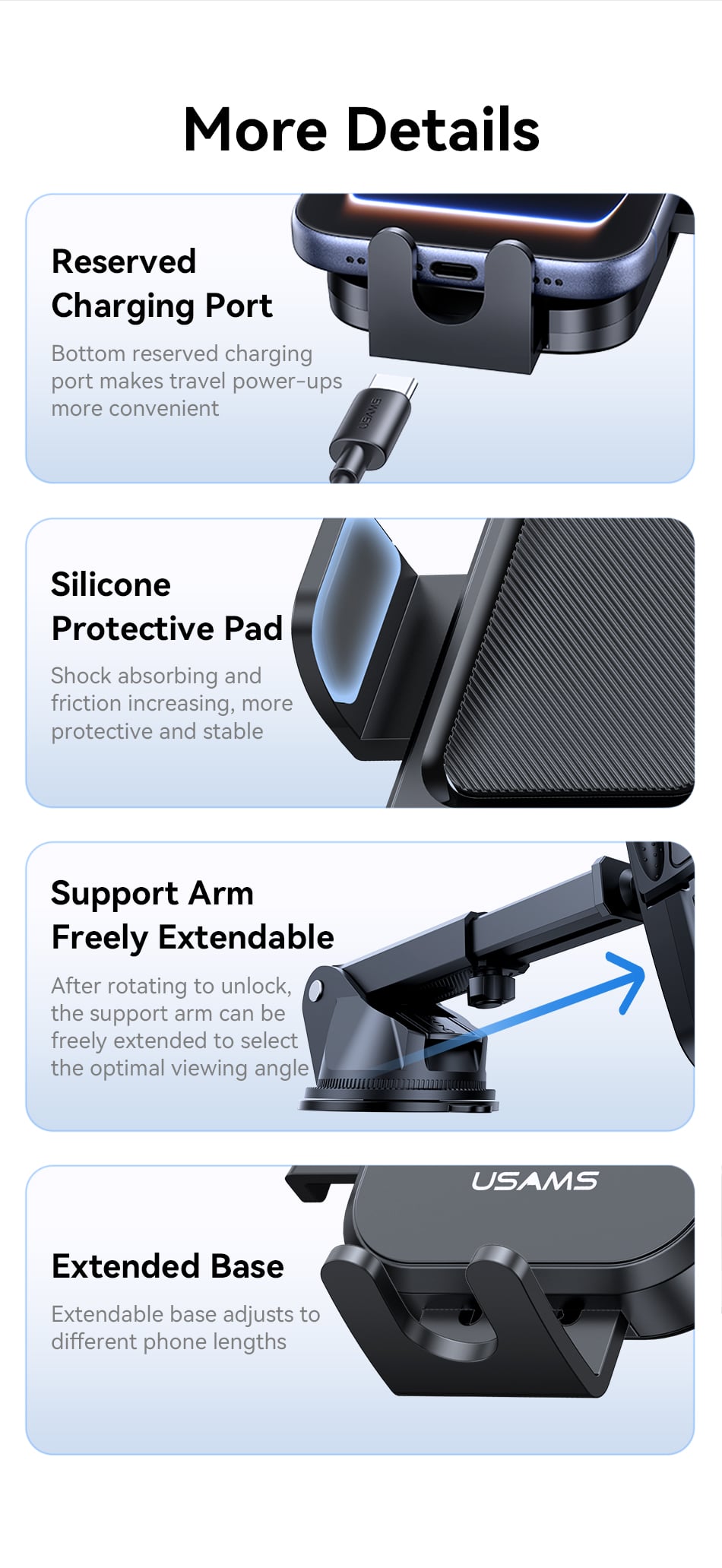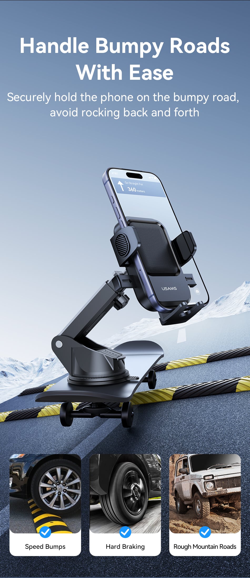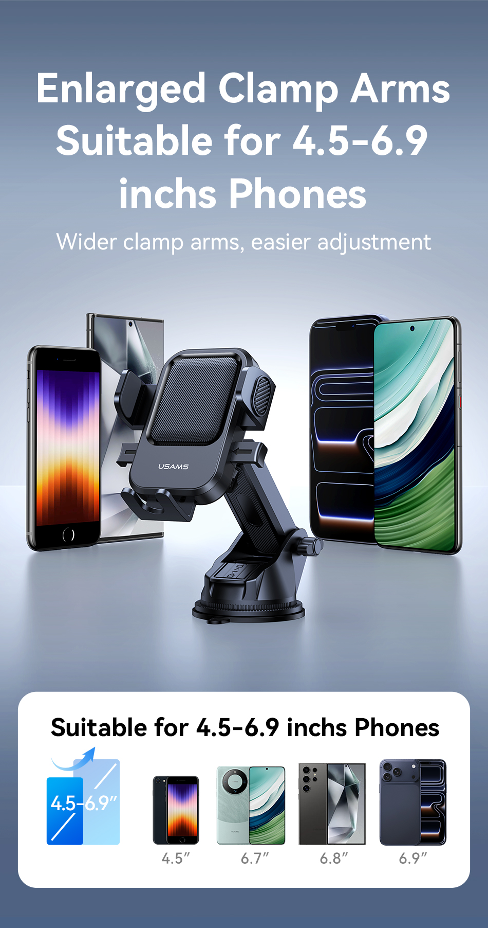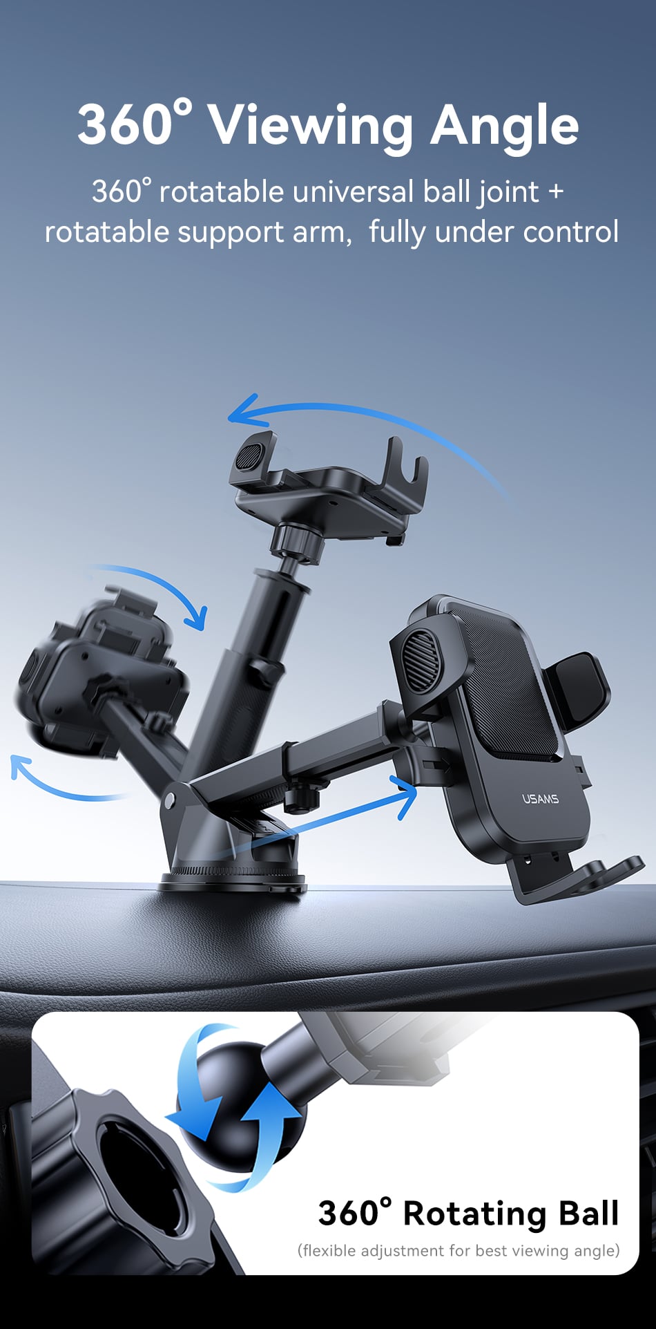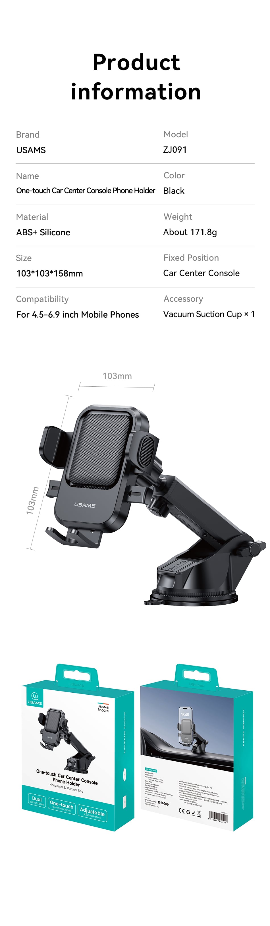 Tính năng Giá Đỡ Điện Thoại Cho Ô Tô USAMS ZJ091 (Car Center Console Version, For 4.5-6.9″ Mobile Phones)