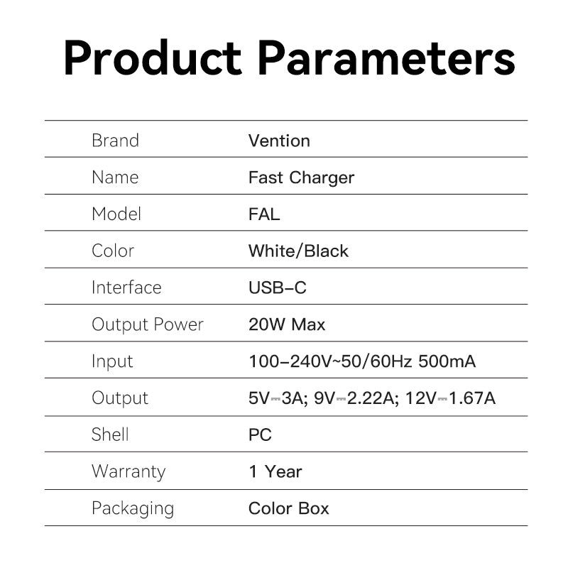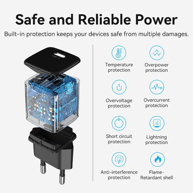 Hình ảnh Củ sạc nhanh mini Vention Super-Small 1-Port PD Quick charger 20W (Type C, Smart & Safe, EU/US-Plug)