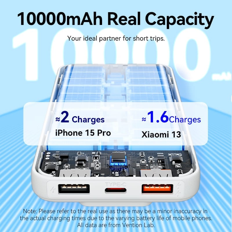 Tính năng Pin Dự Phòng VENTION FHO 10000mAh 22.5W (With Type-C + Lightning Cable, Digital Display, 1*Type-C + 2*USB-A Port, Micro-USB Input Port)