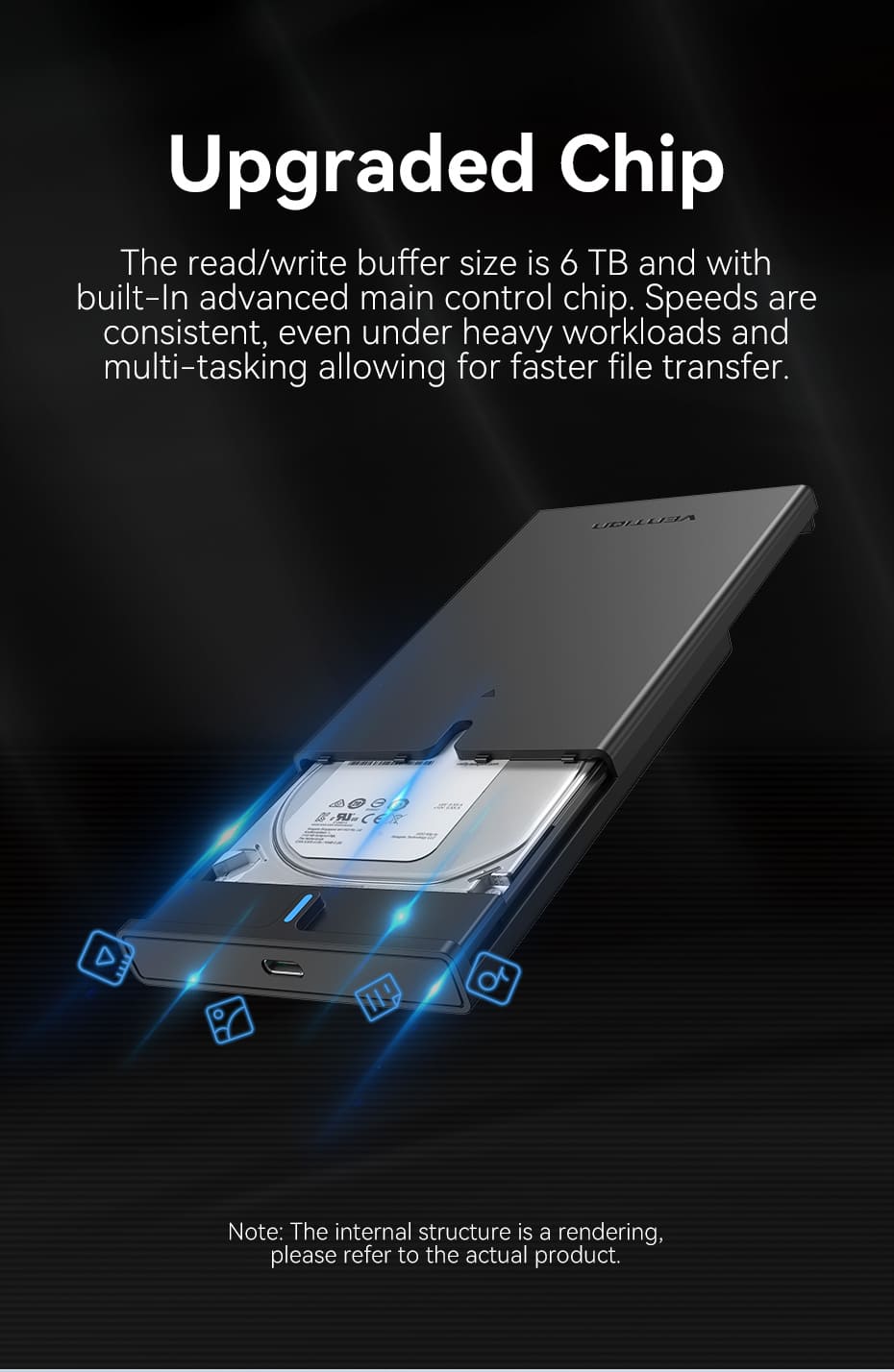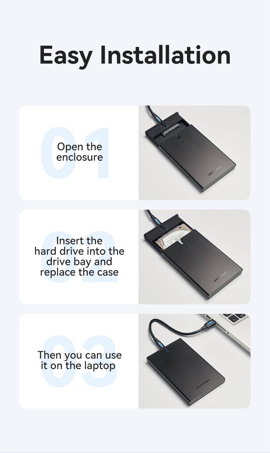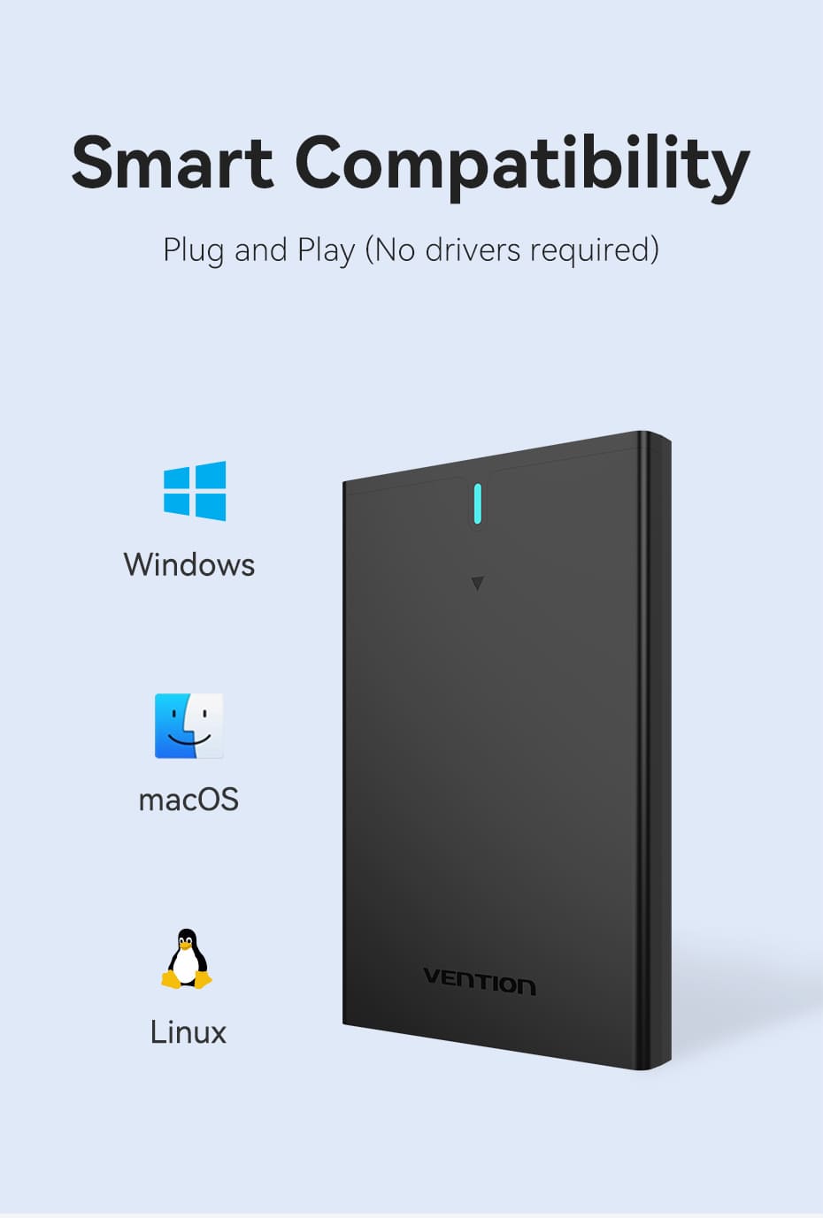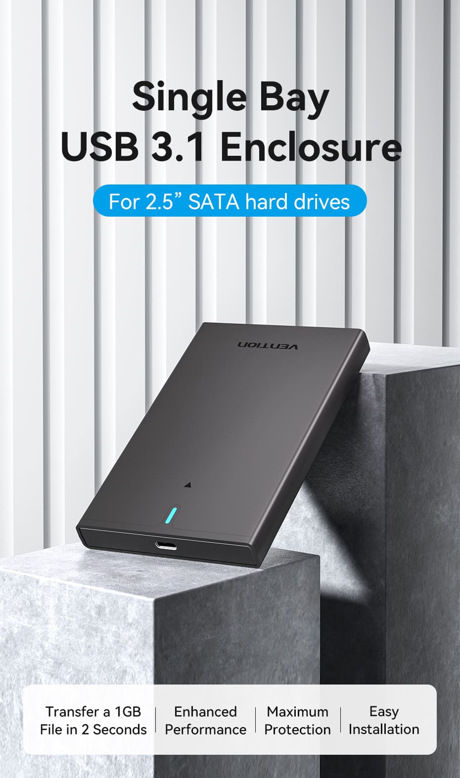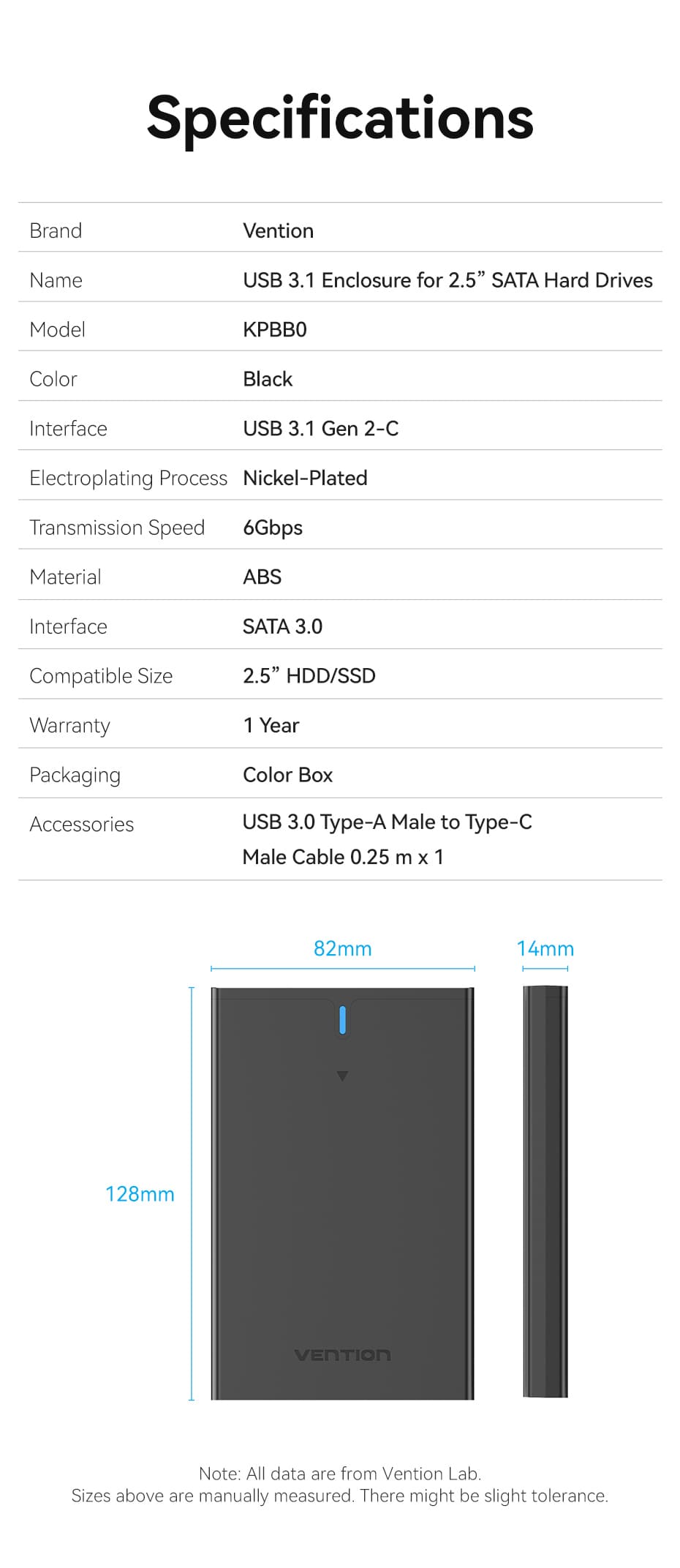 • Tên tiếng Việt: Box ổ cứng tốc độ cao Vention 2.5 Inch SATA Hard Drive Enclosure - KPB (USB 3.1 Gen 2-C, Support all 2.5" SSD & SATA HDDs)
