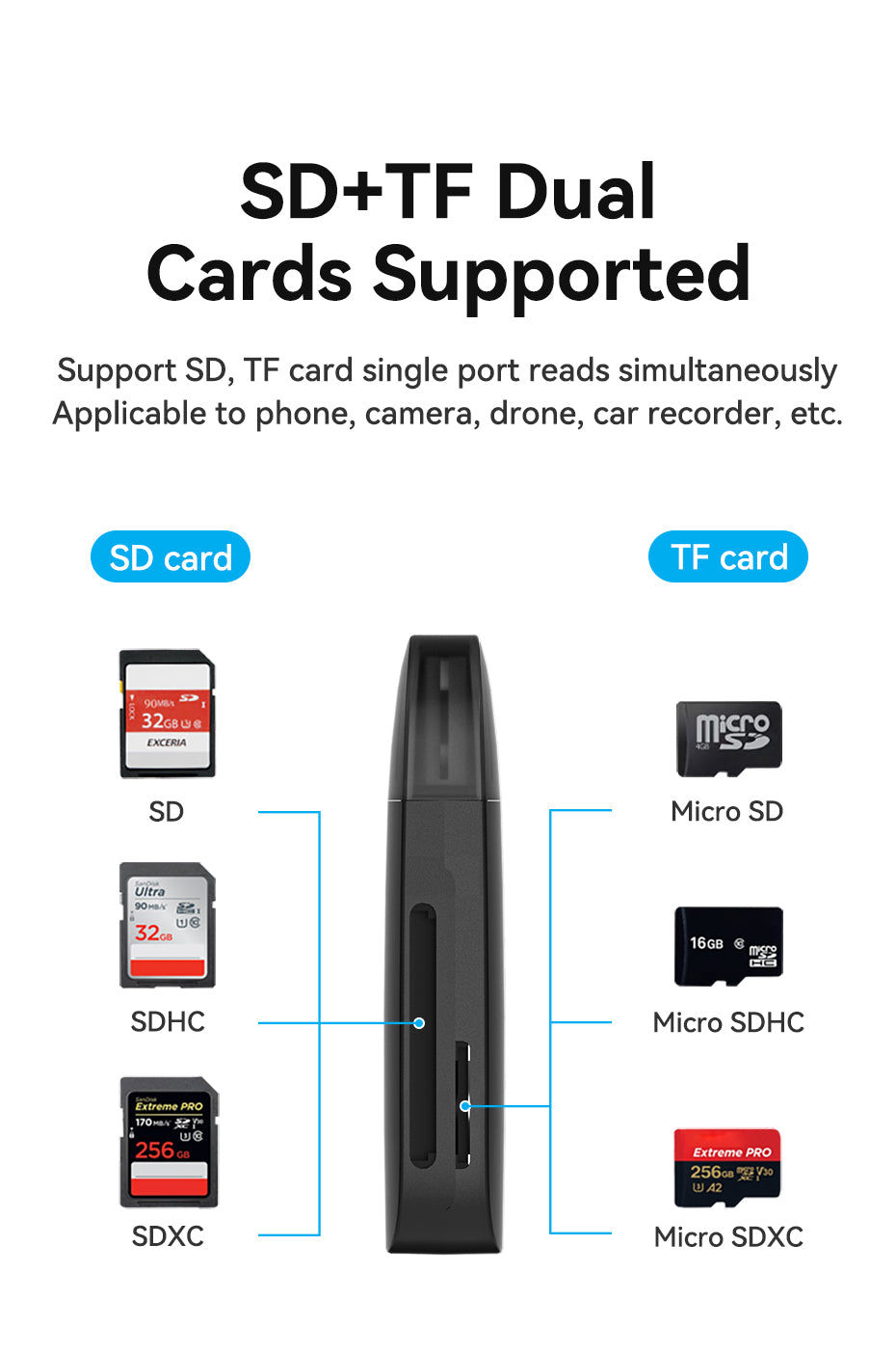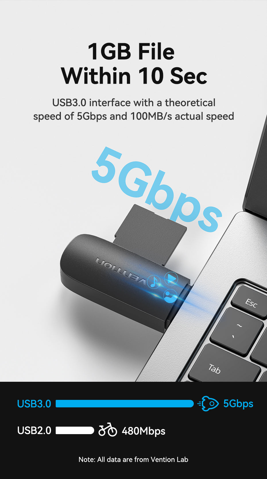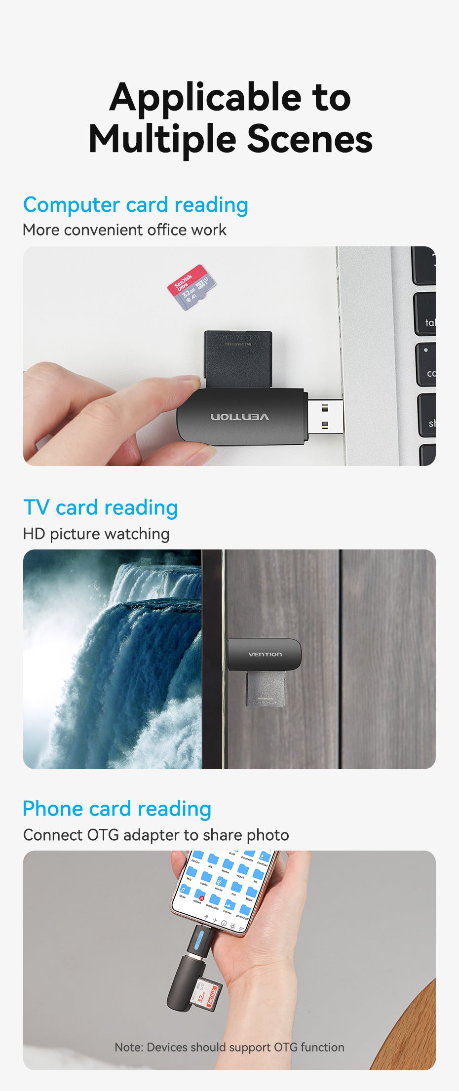 Tính năng Đầu Đọc Thẻ Nhớ 2-in-1 USB 3.0 A Card Reader(SD+TF) VENTION CLF (5Gbps)