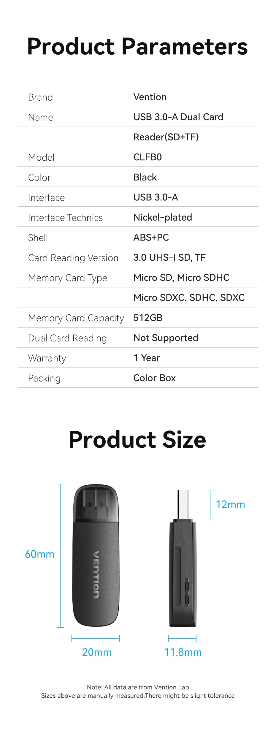 Giới thiệu Đầu Đọc Thẻ Nhớ 2-in-1 USB 3.0 A Card Reader(SD+TF) VENTION CLF (5Gbps)