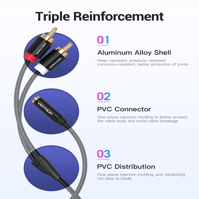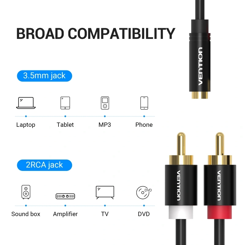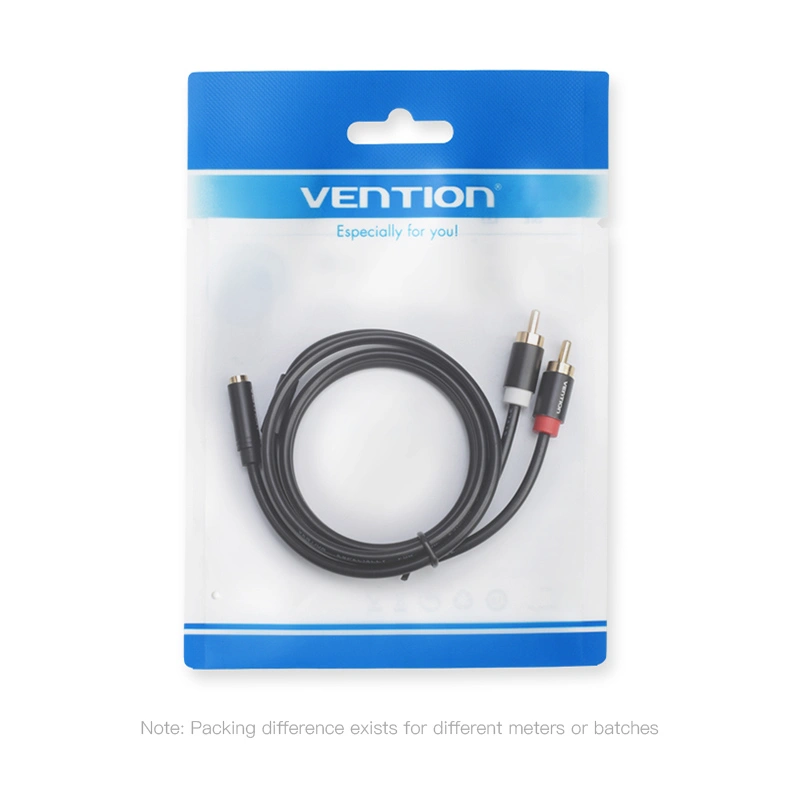 VAB-R01-B200 | Vention 3.5mm Female to 2RCA Male Audio Cable 2M Black Metal Type ( VAB-R01-B200 )