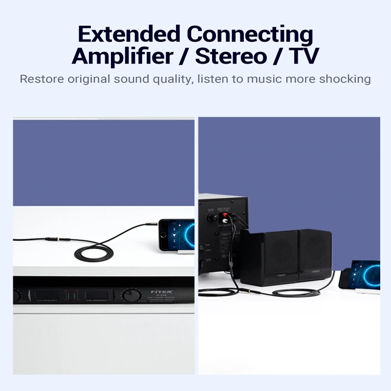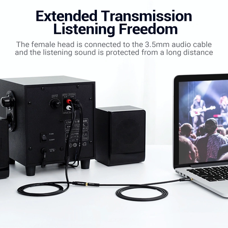 VAB-B06-B100-M | Vention Cotton Braided 3.5mm Audio Extension Cable 1M Black Metal Type ( VAB-B06-B100-M )