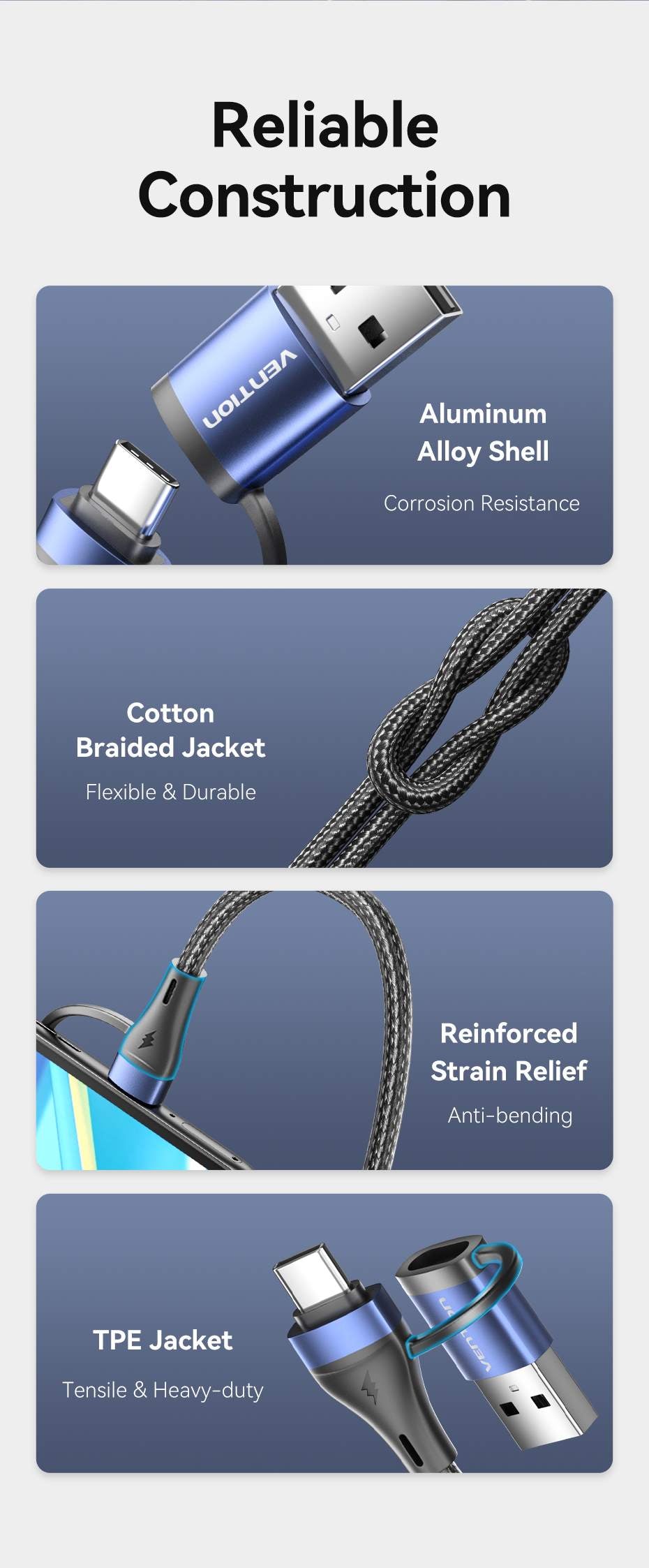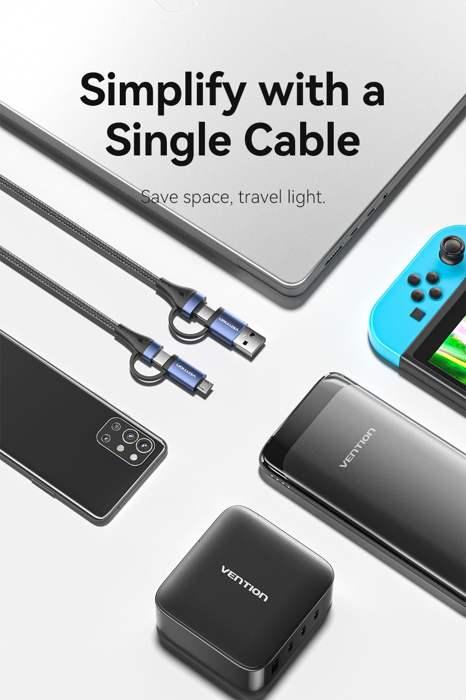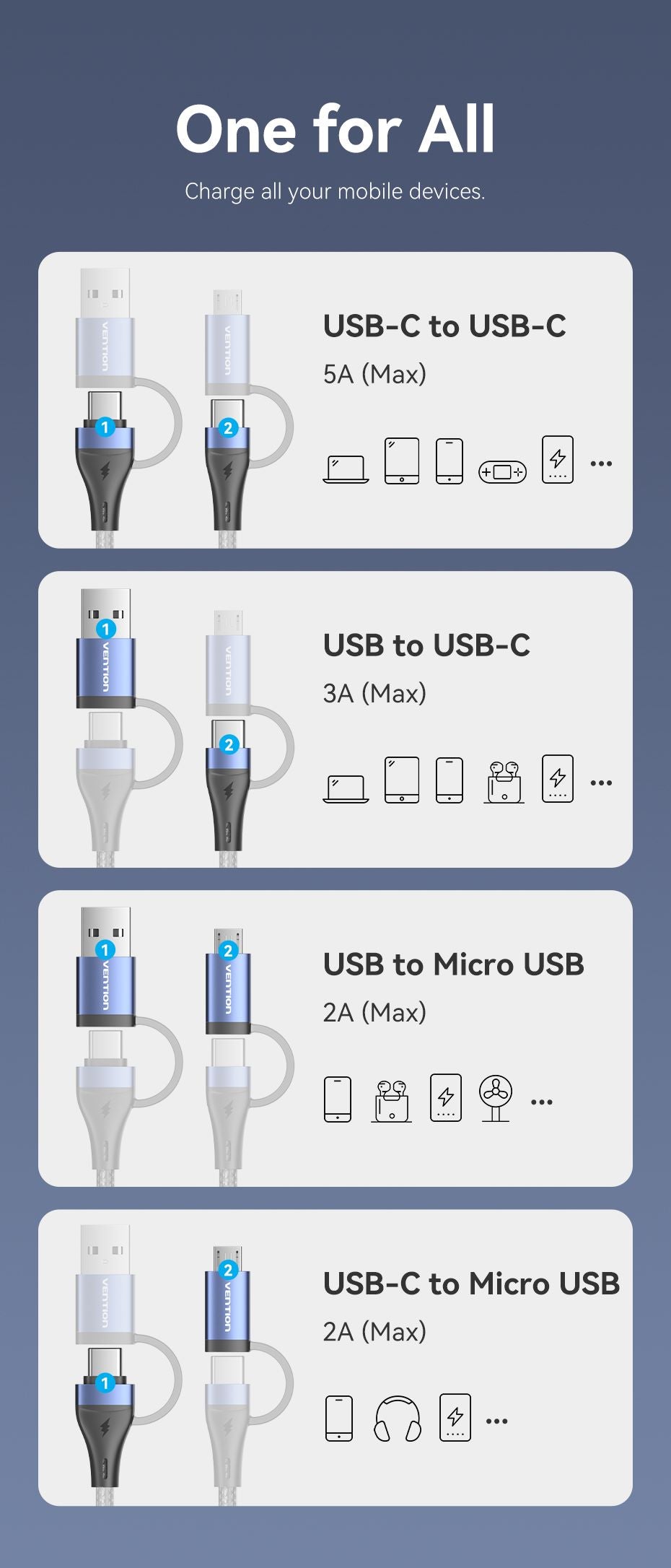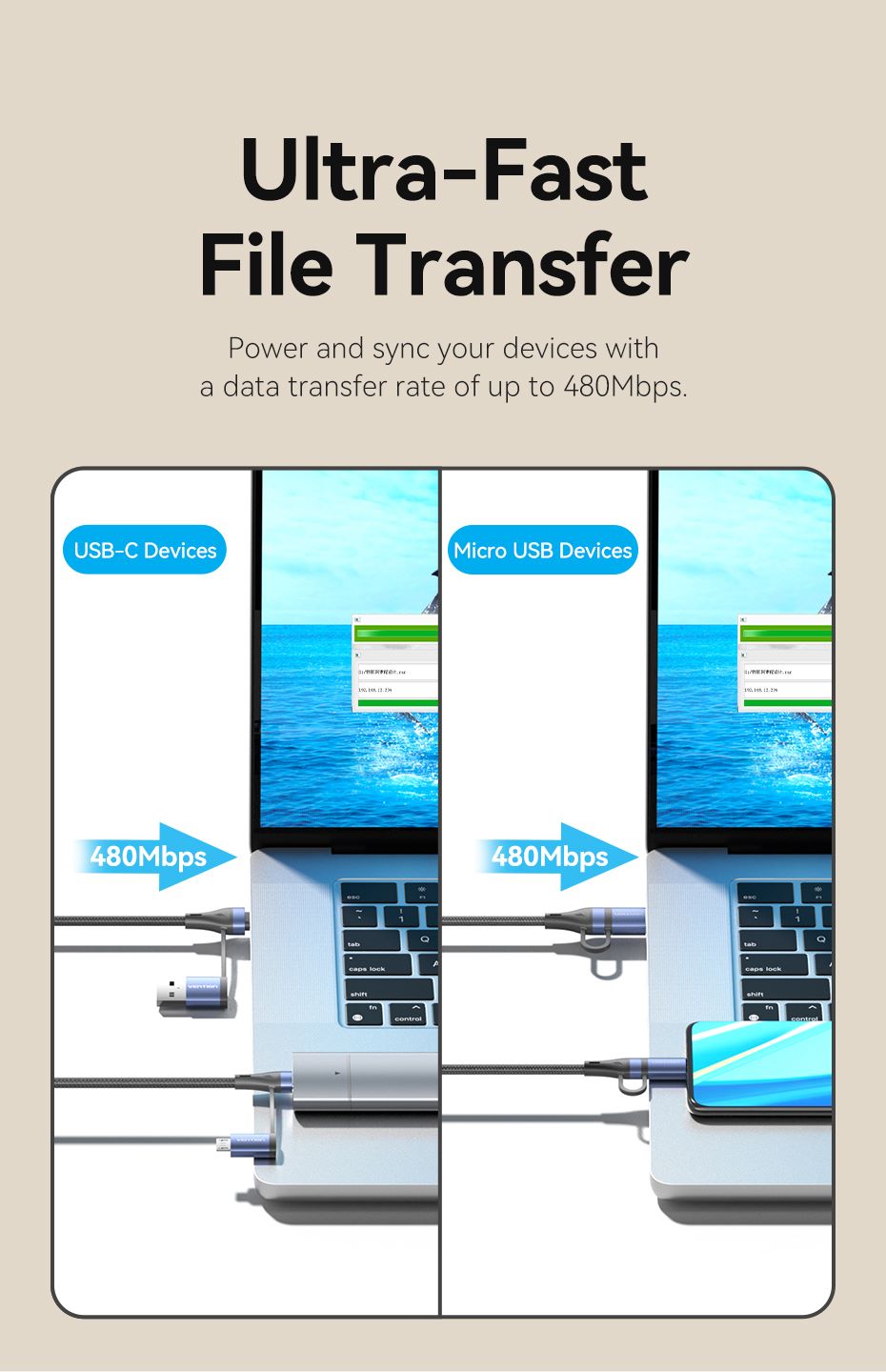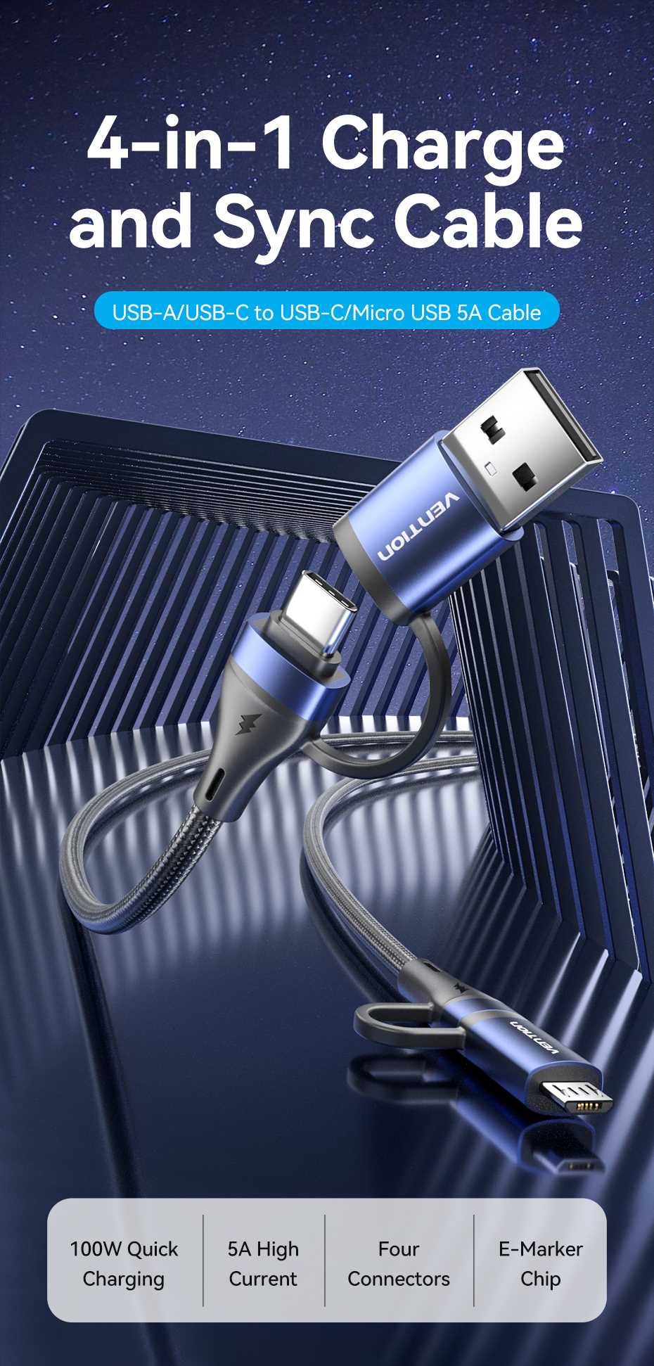 USB-A/USB-C to USB-C/Micro USB 5A Cable
